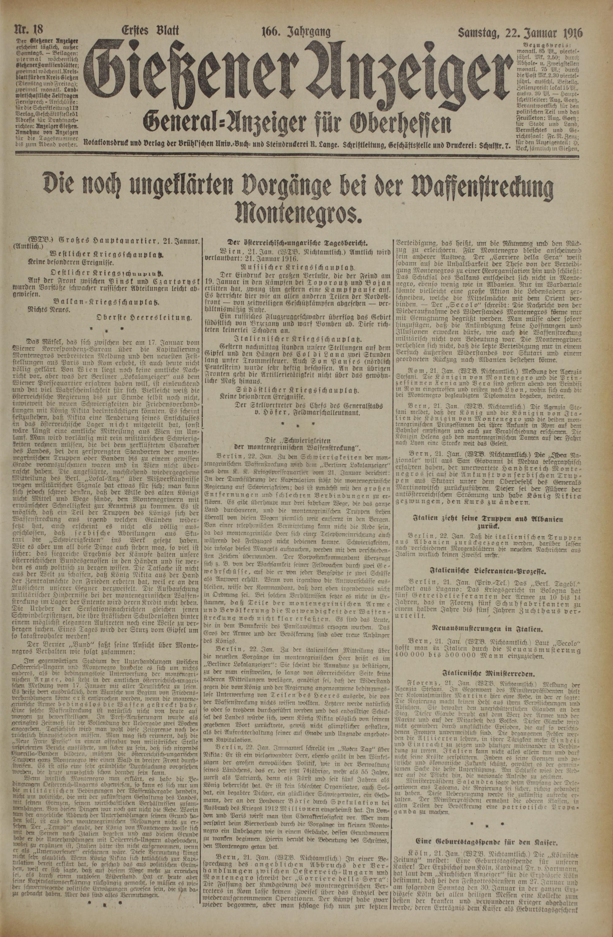 (22.1.1916) Erstes Blatt