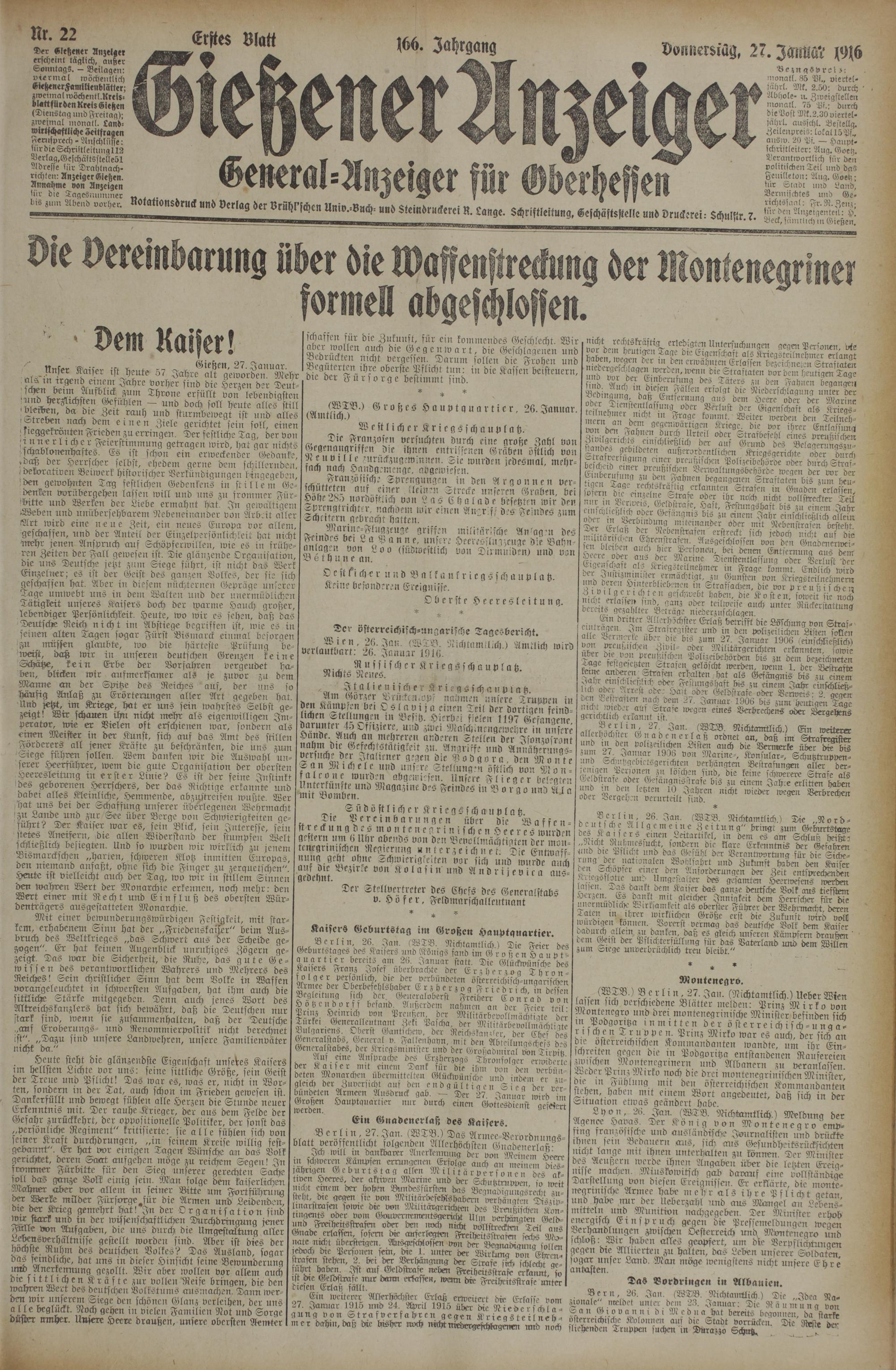 (27.1.1916) Erstes Blatt