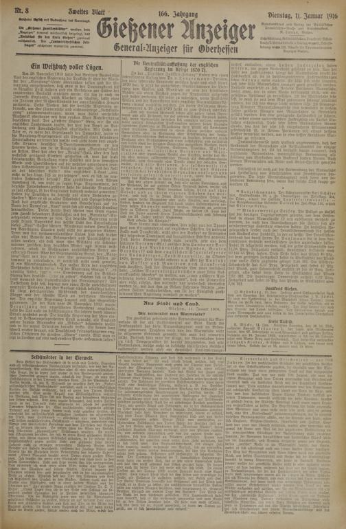 Regionale Zeitungen aus der Zeit des Ersten Weltkrieges