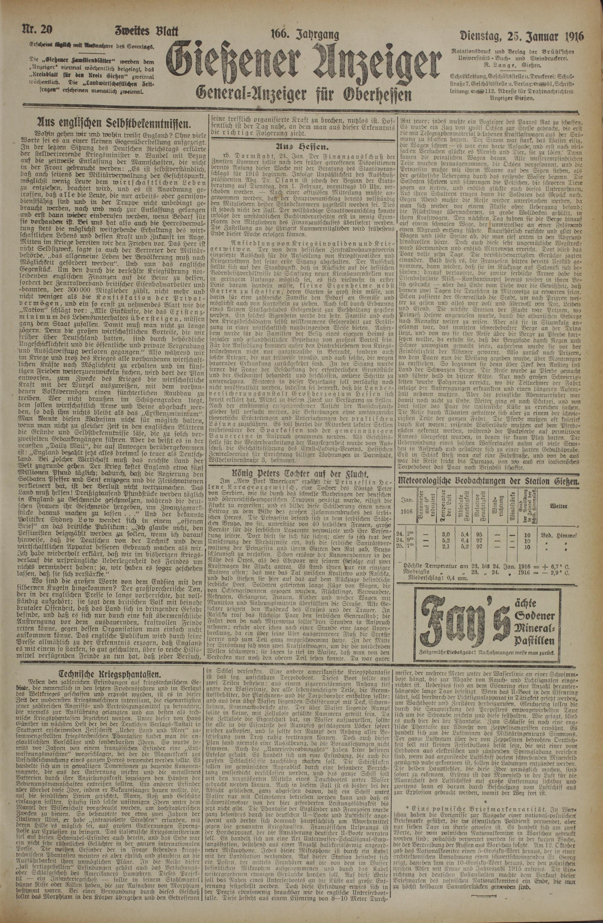 (25.1.1916) Zweites Blatt