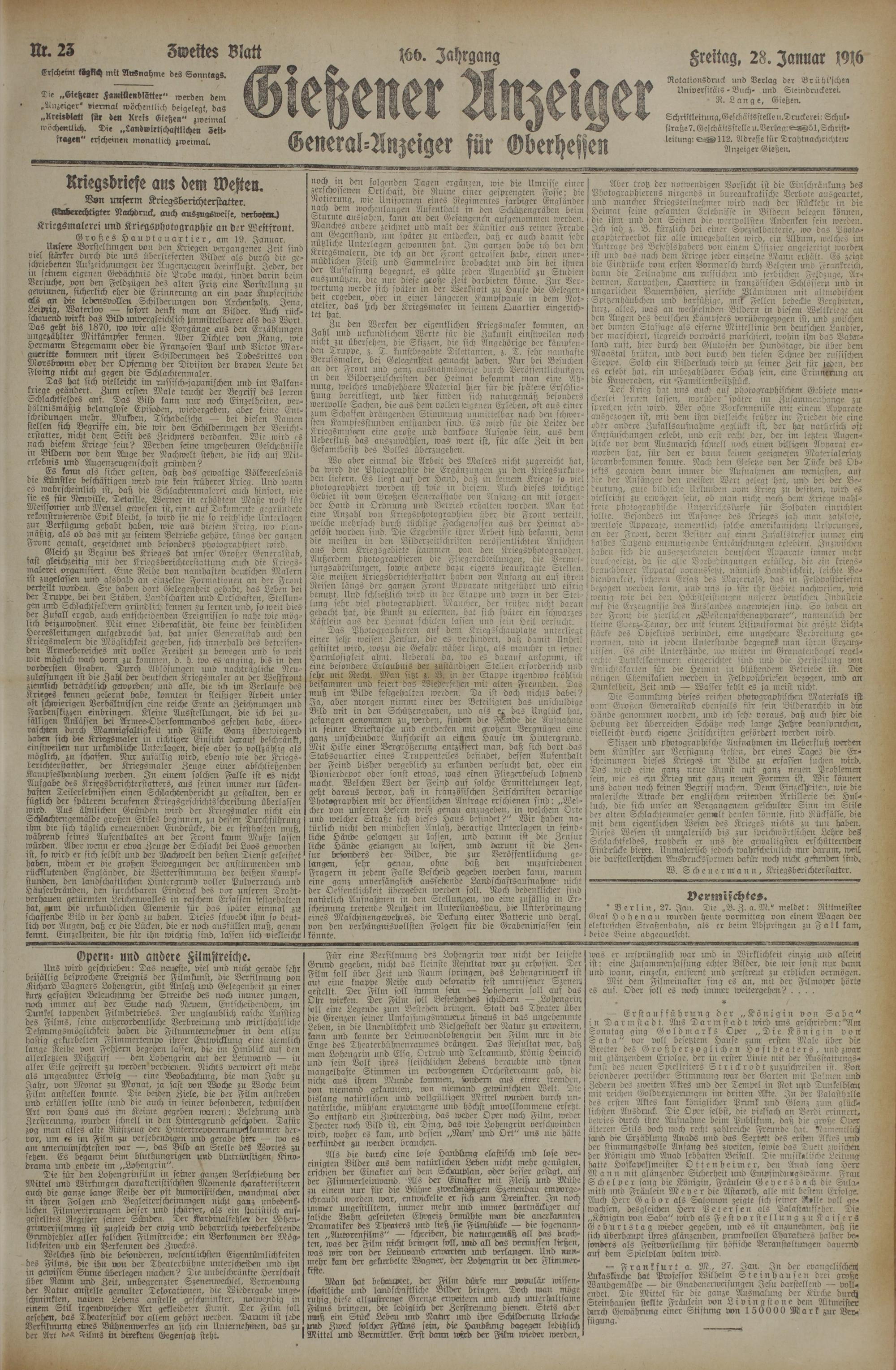 (28.1.1916) Zweites Blatt