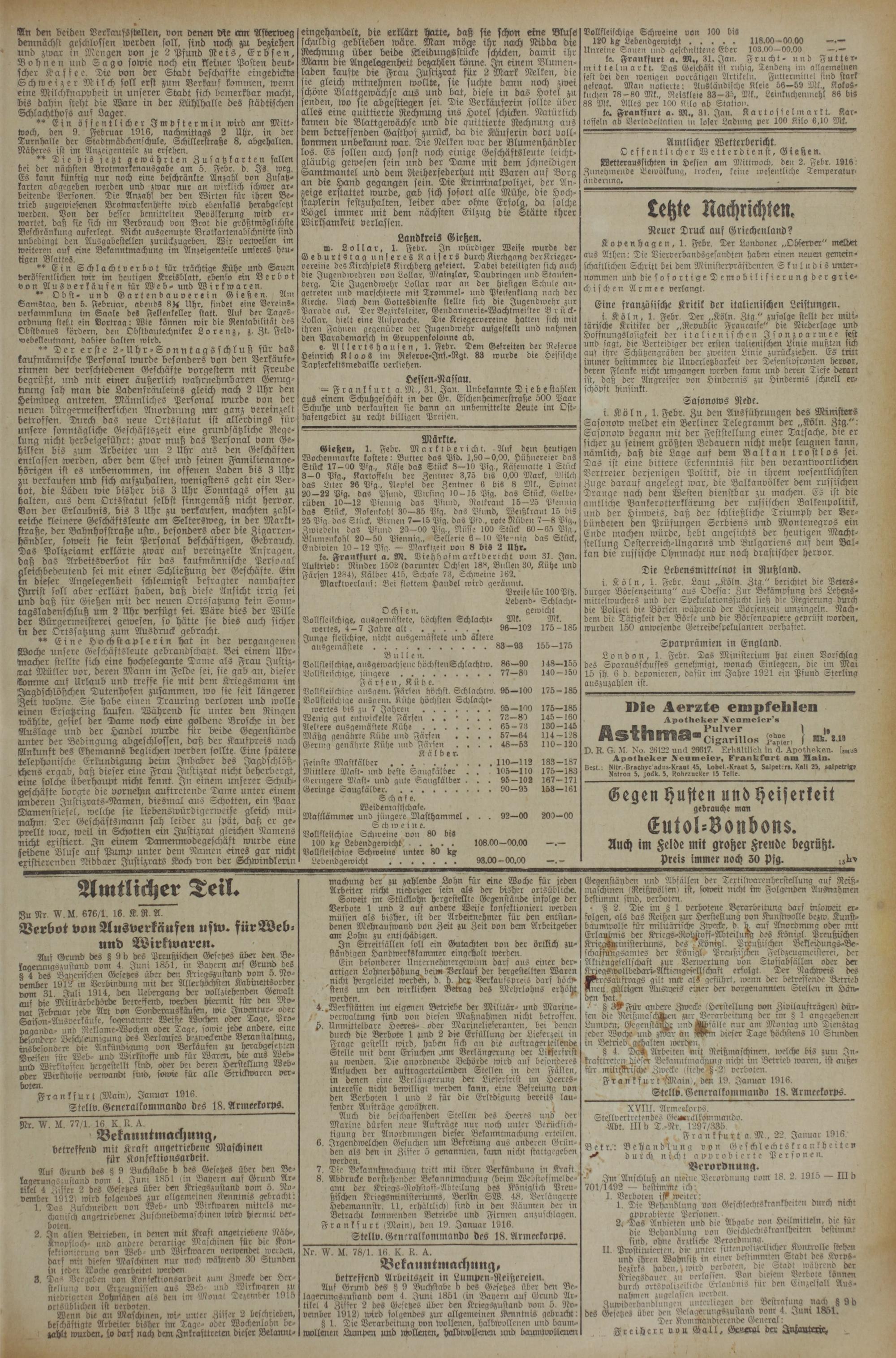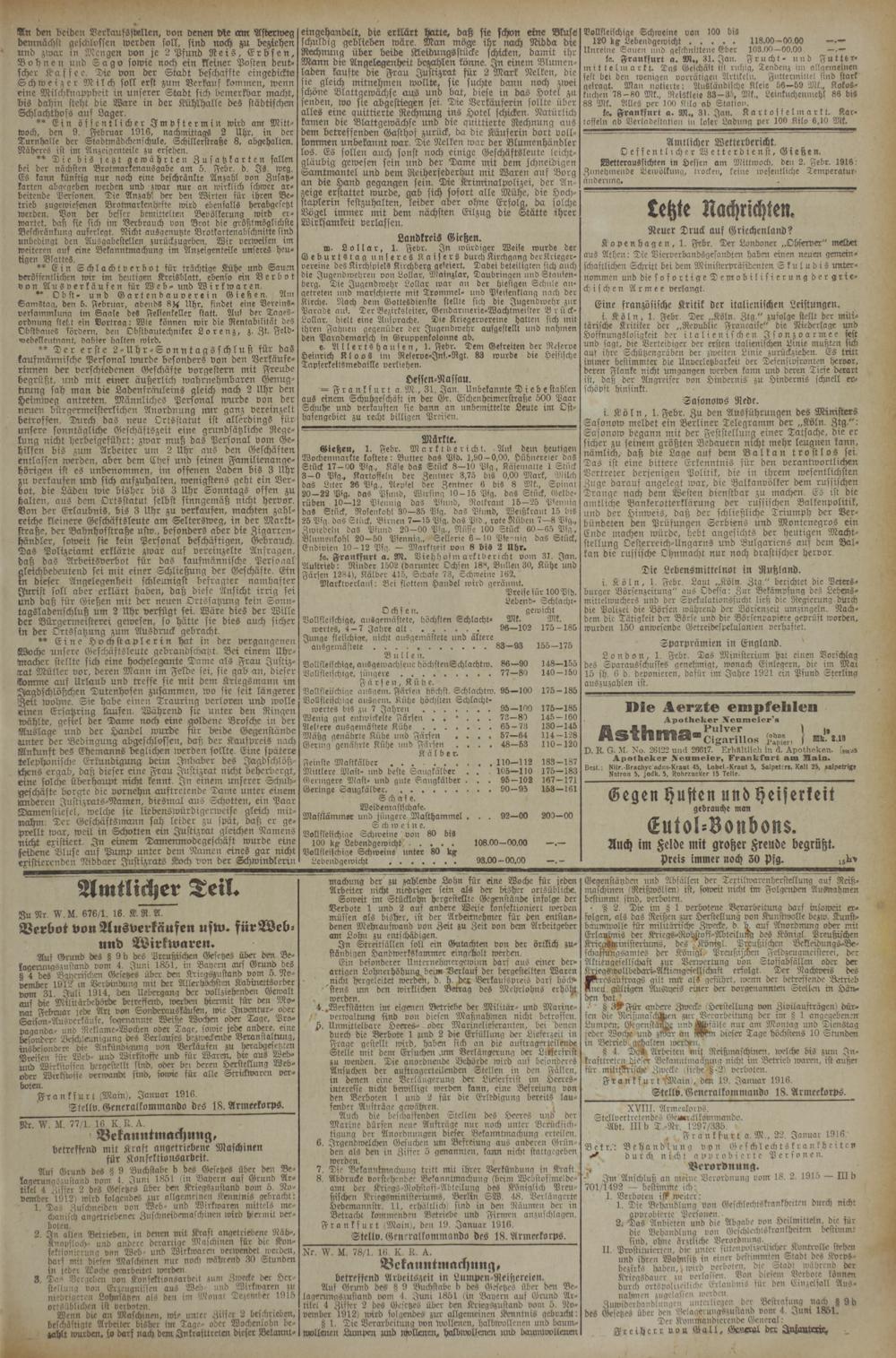 (1.2.1916) Erstes Blatt