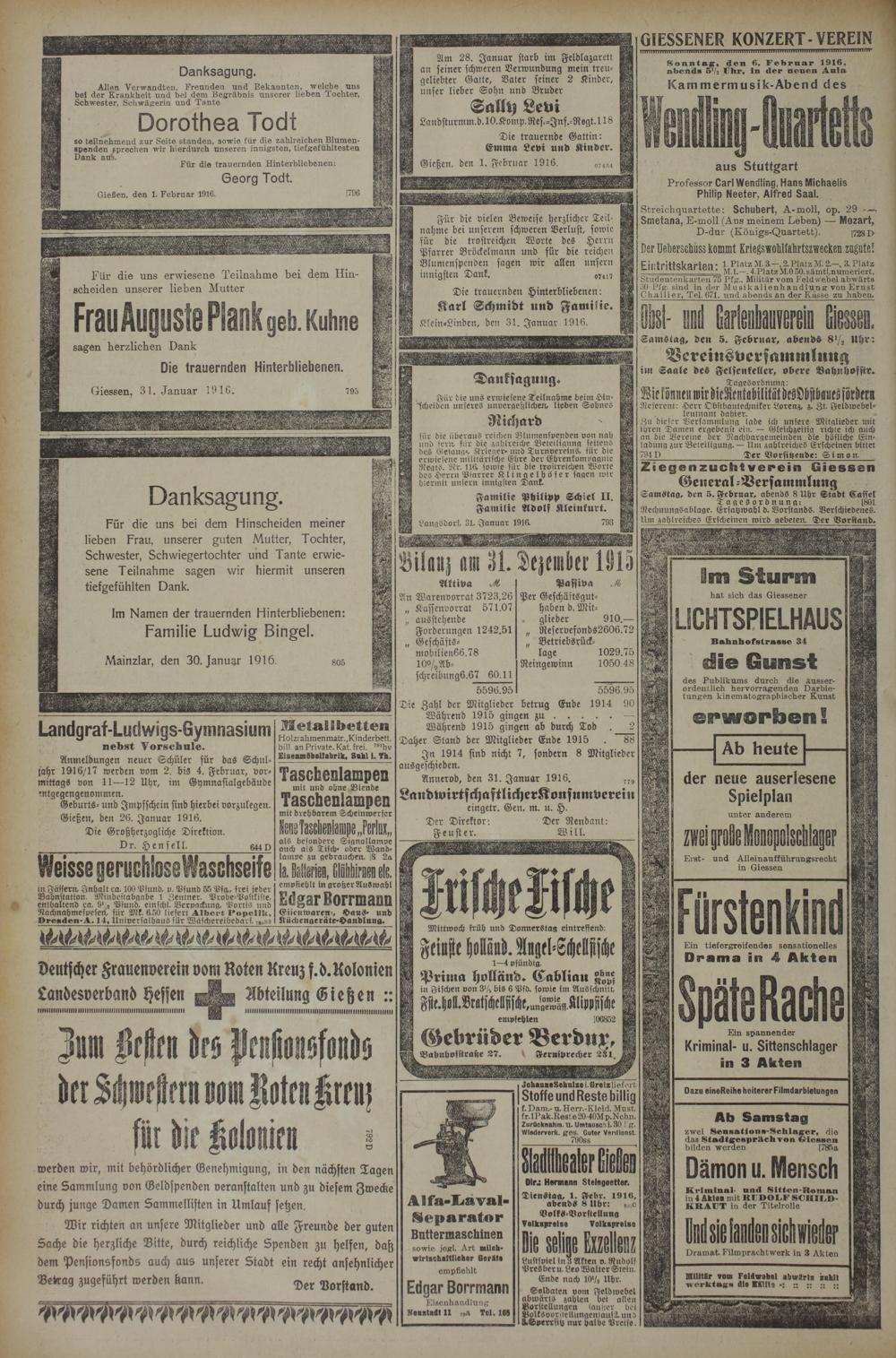 (1.2.1916) Erstes Blatt