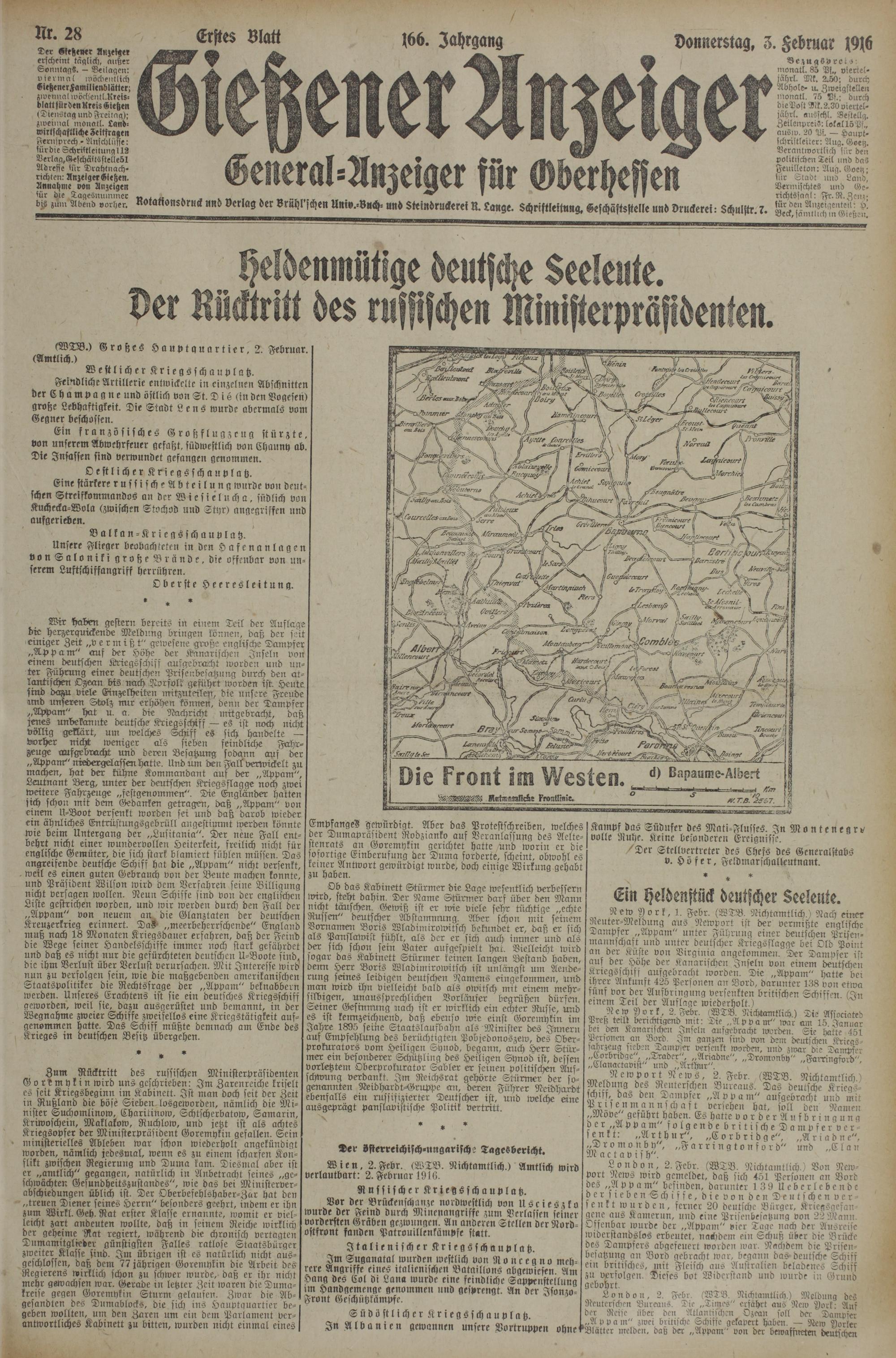 (3.2.1916) Erstes Blatt