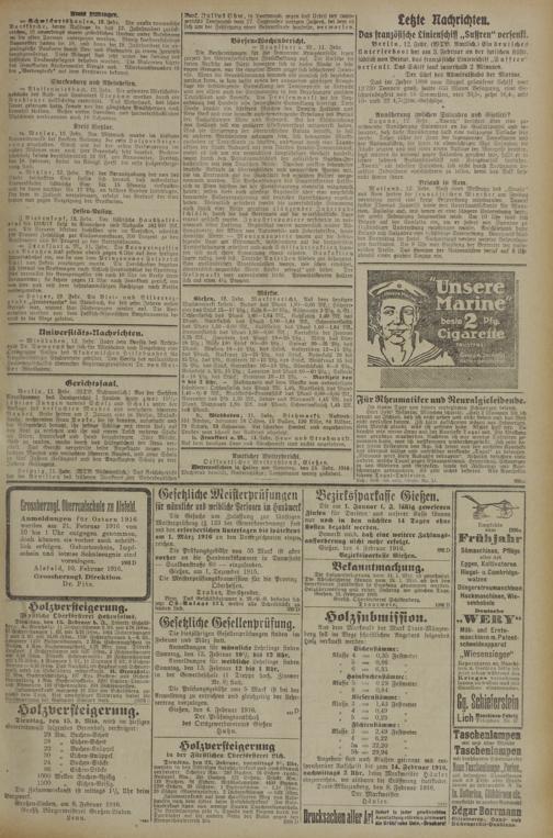 Regionale Zeitungen aus der Zeit des Ersten Weltkrieges
