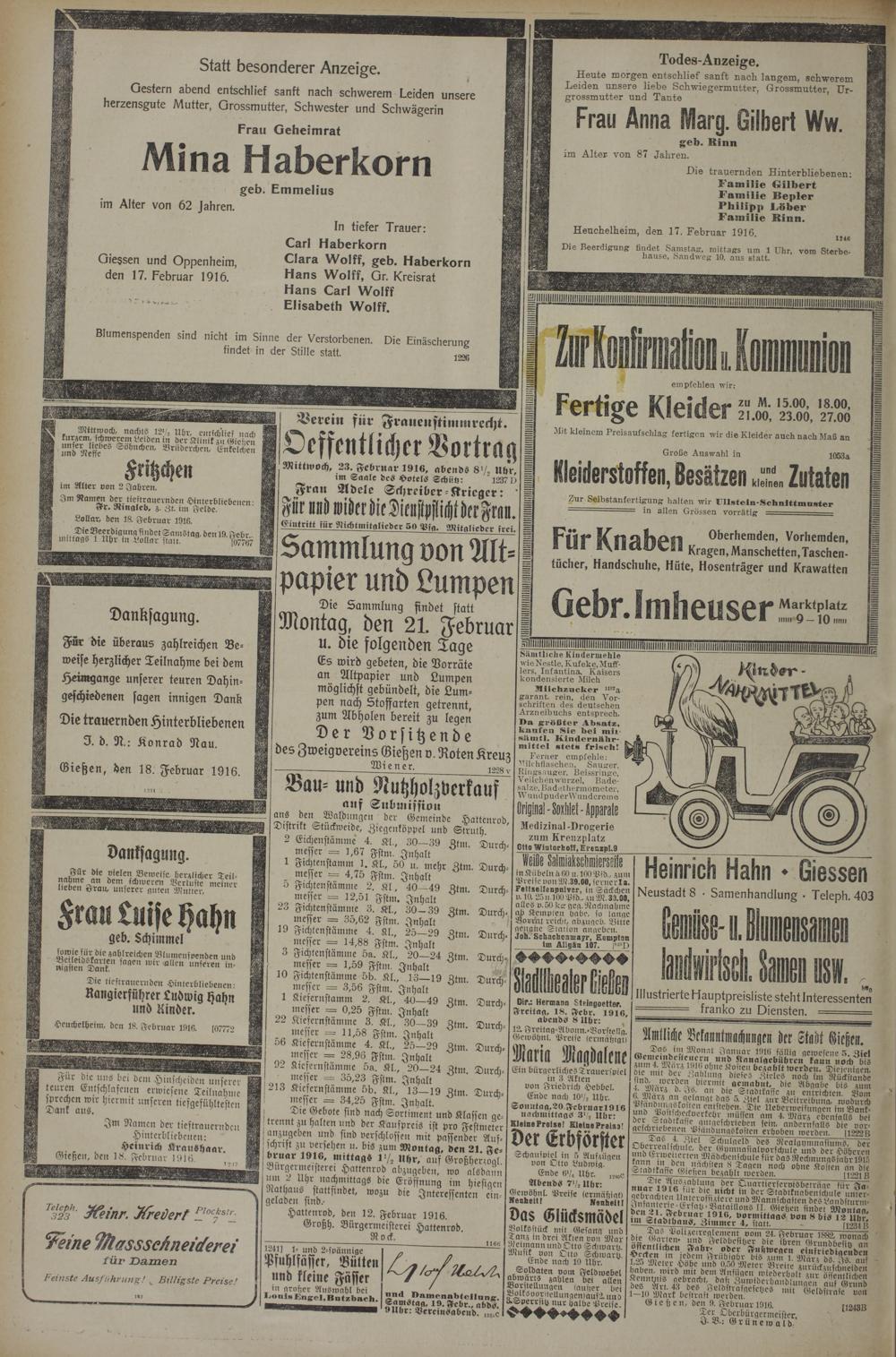 (18.2.1916) Erstes Blatt