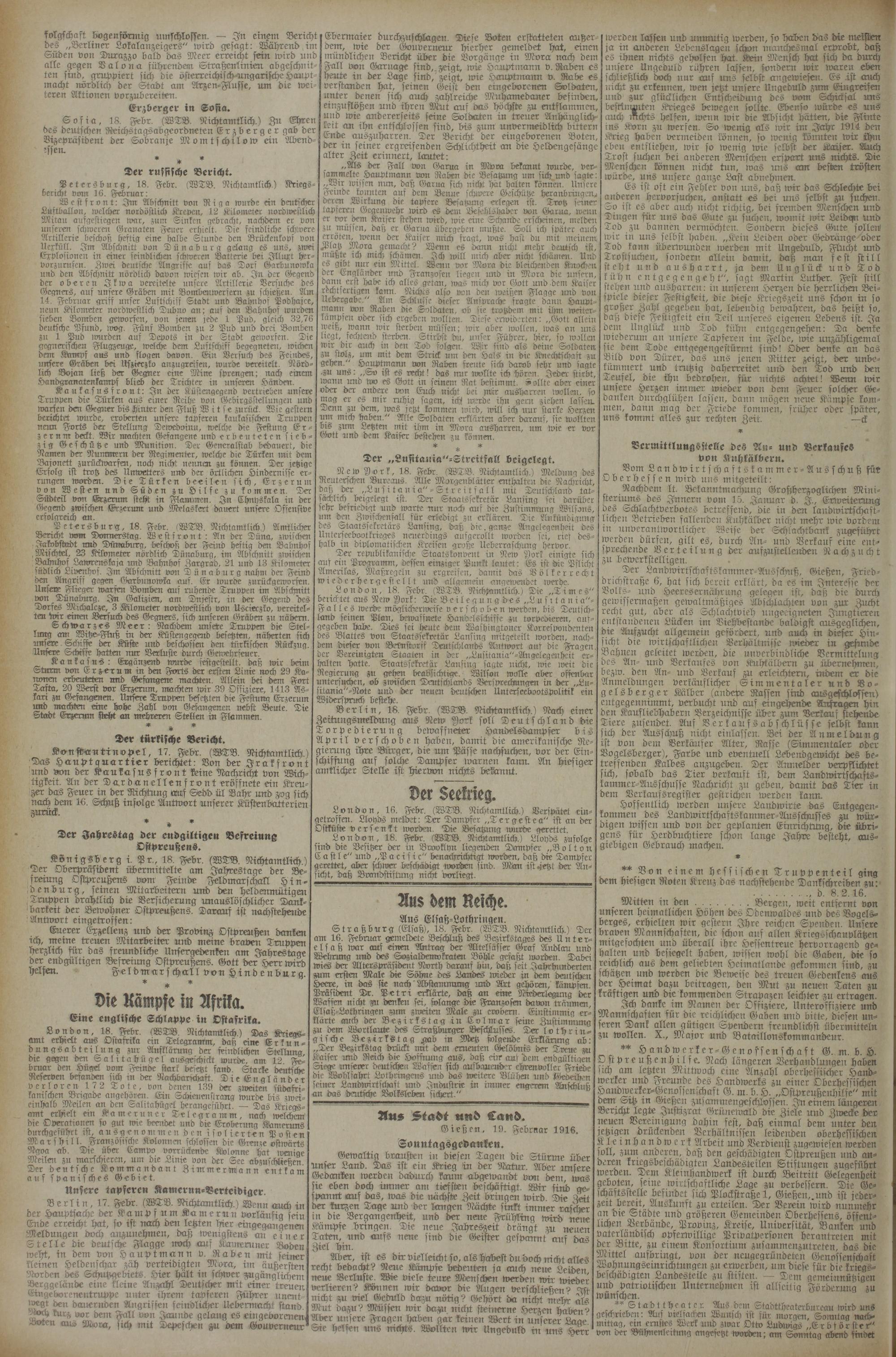 (19.2.1916) Erstes Blatt