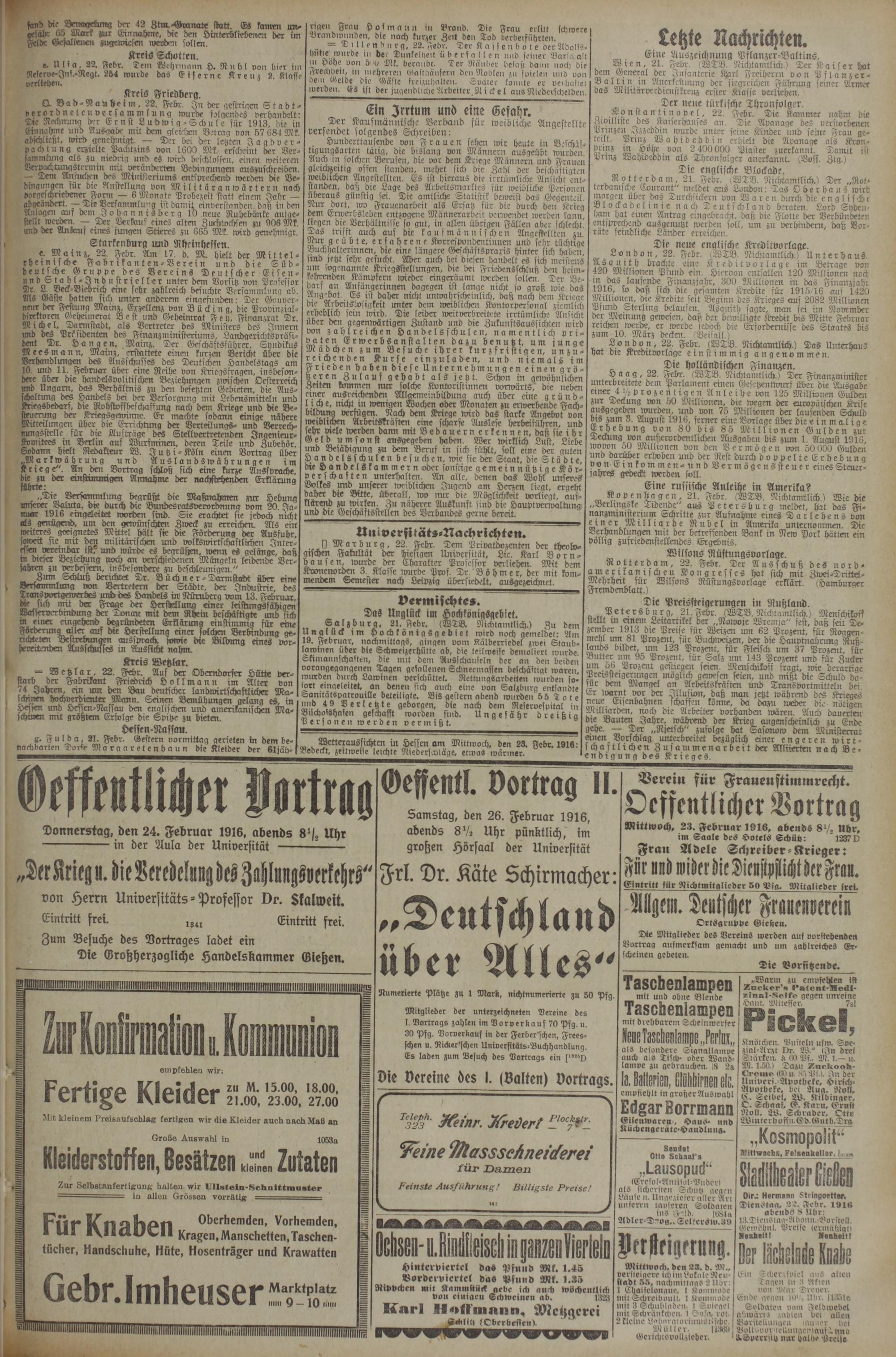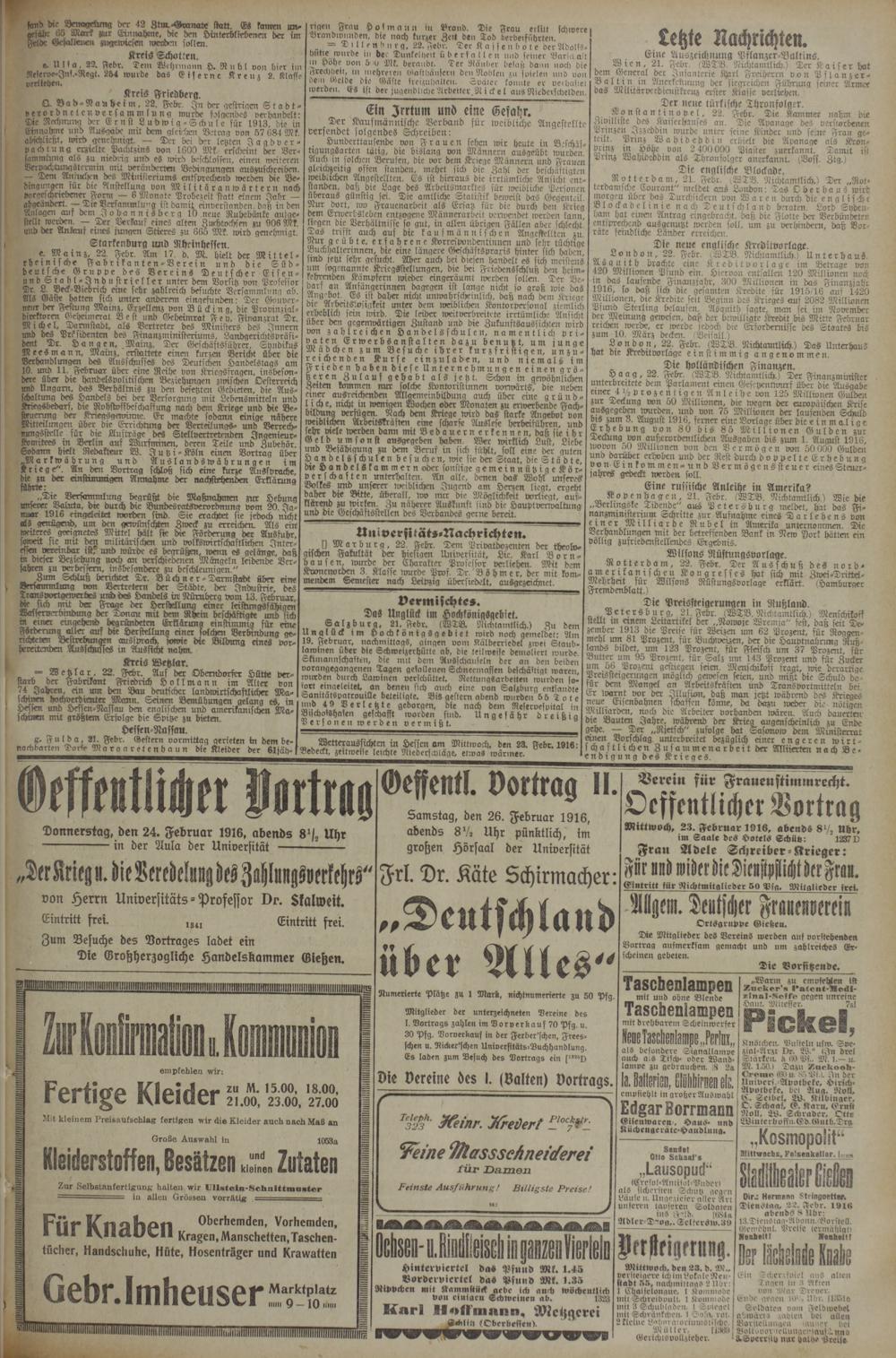 (22.2.1916) Erstes Blatt