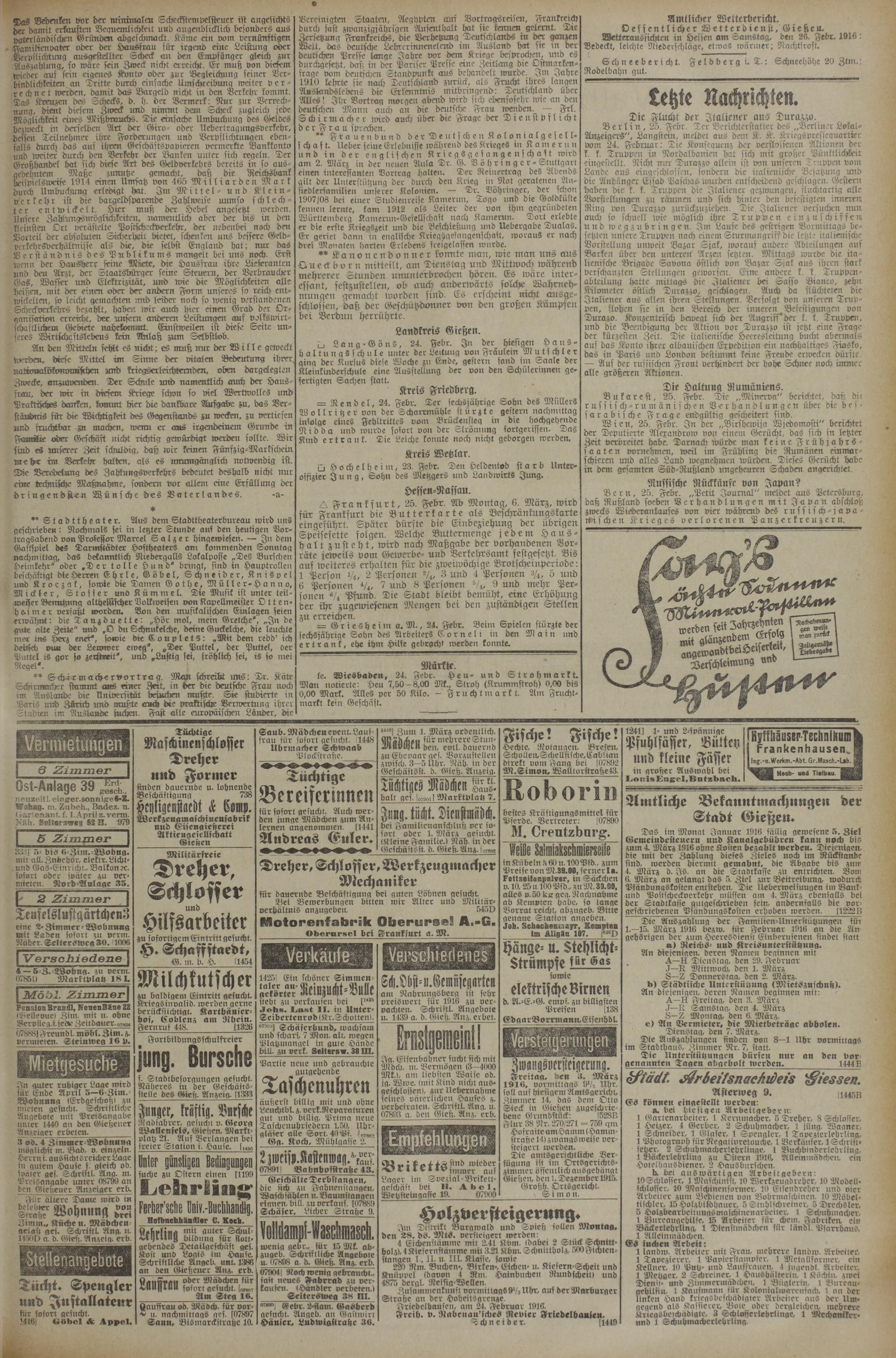 (25.2.1916) Erstes Blatt
