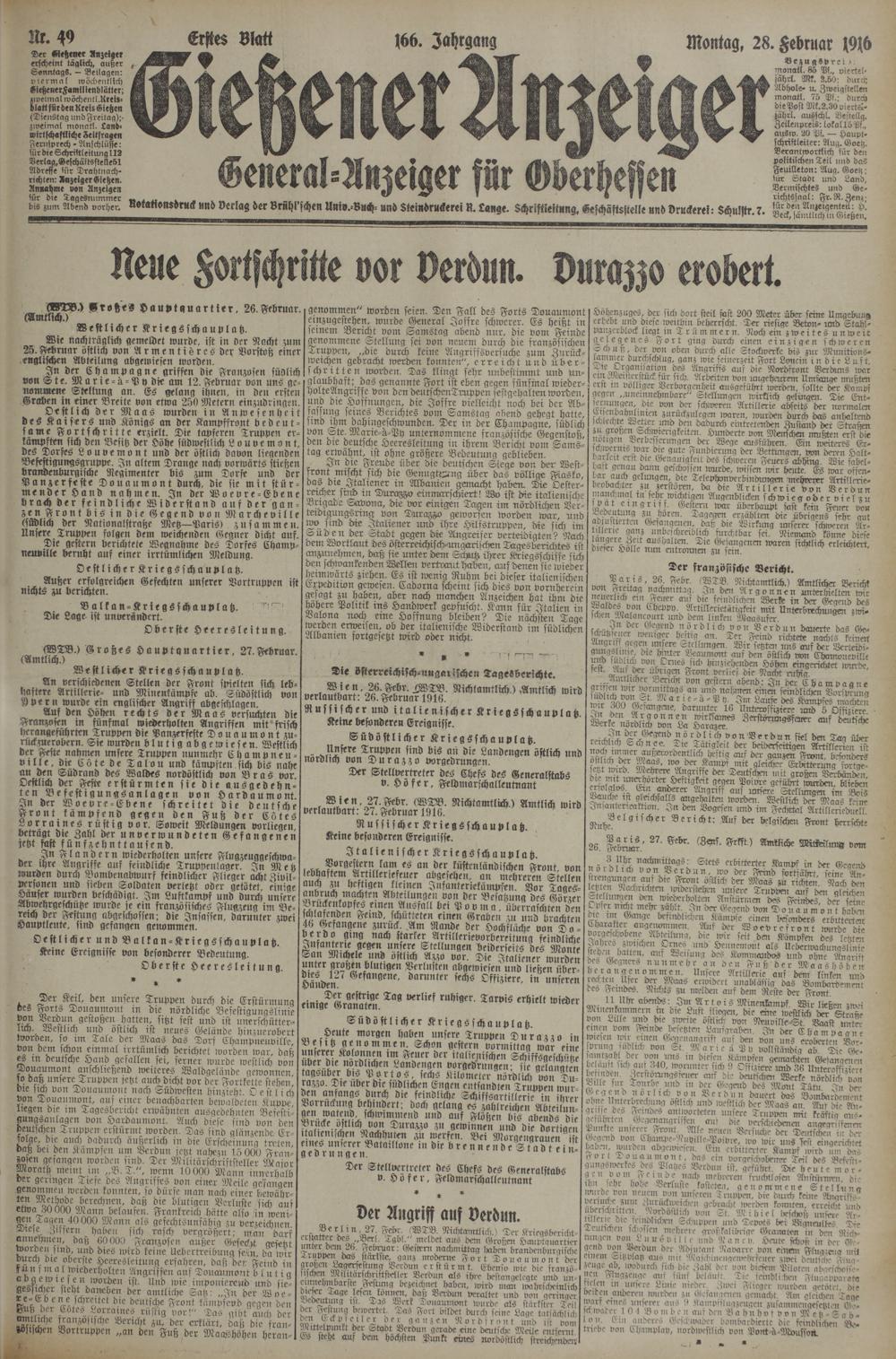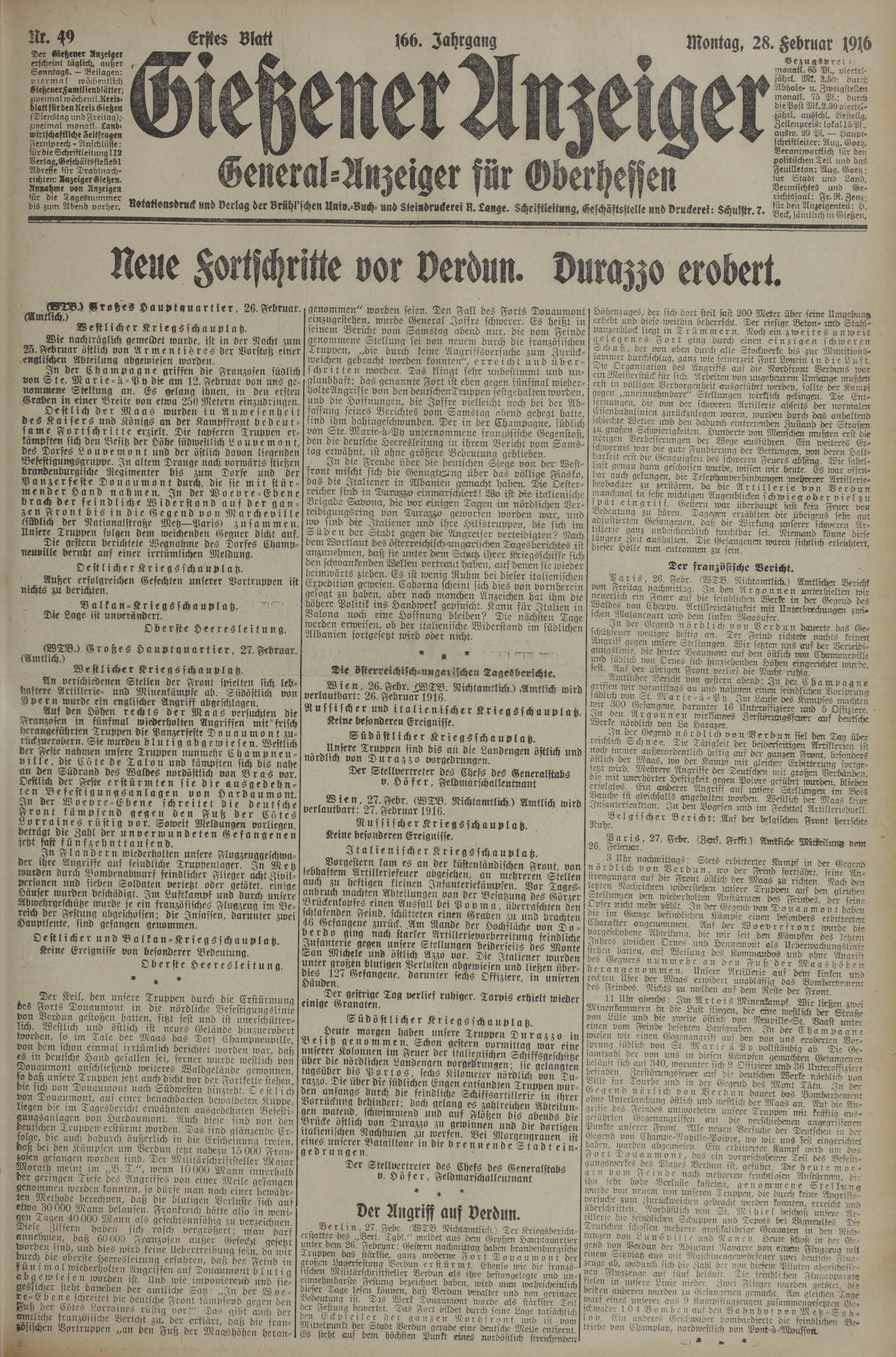 (28.2.1916) Erstes Blatt