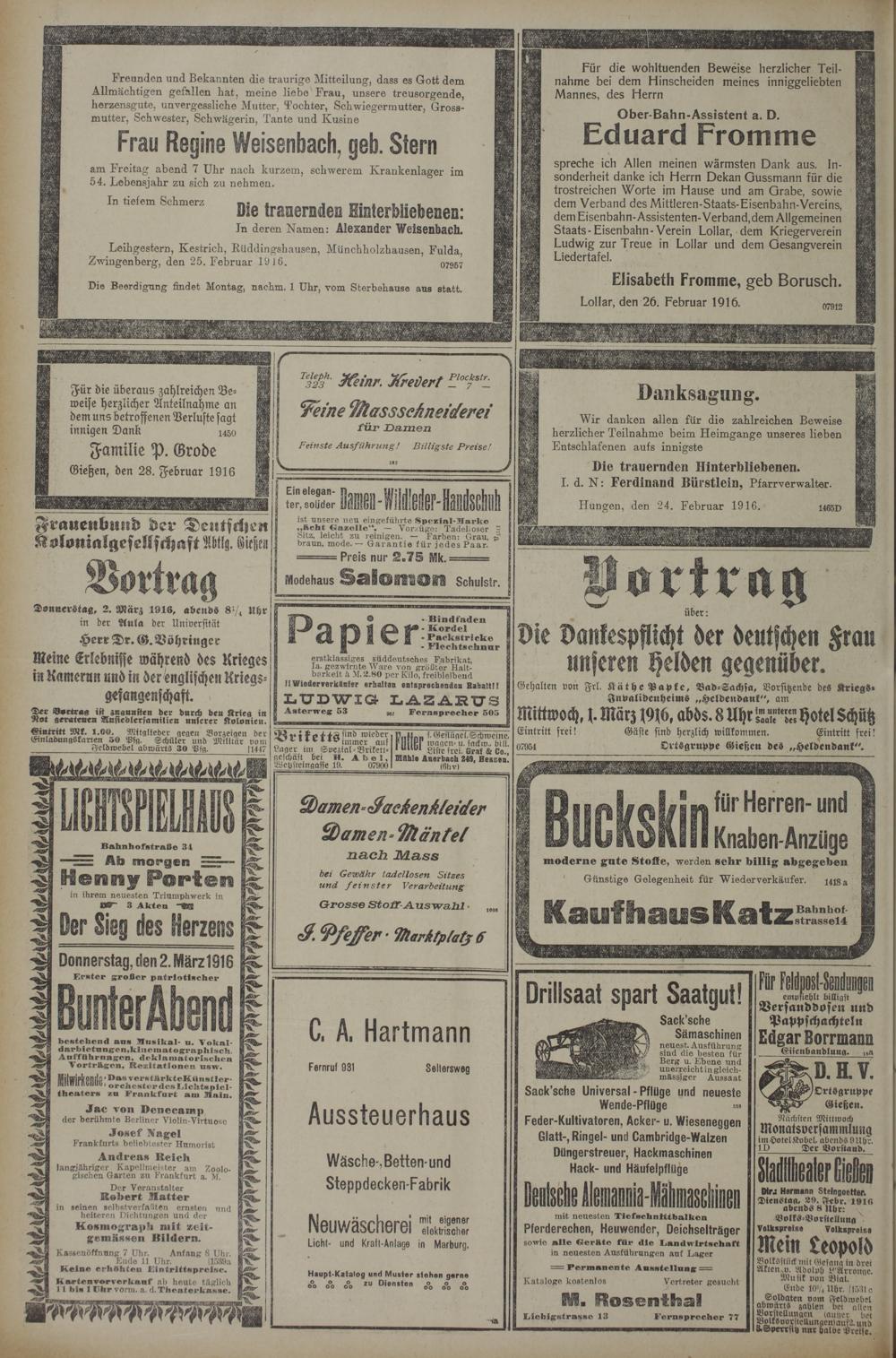 (28.2.1916) Erstes Blatt