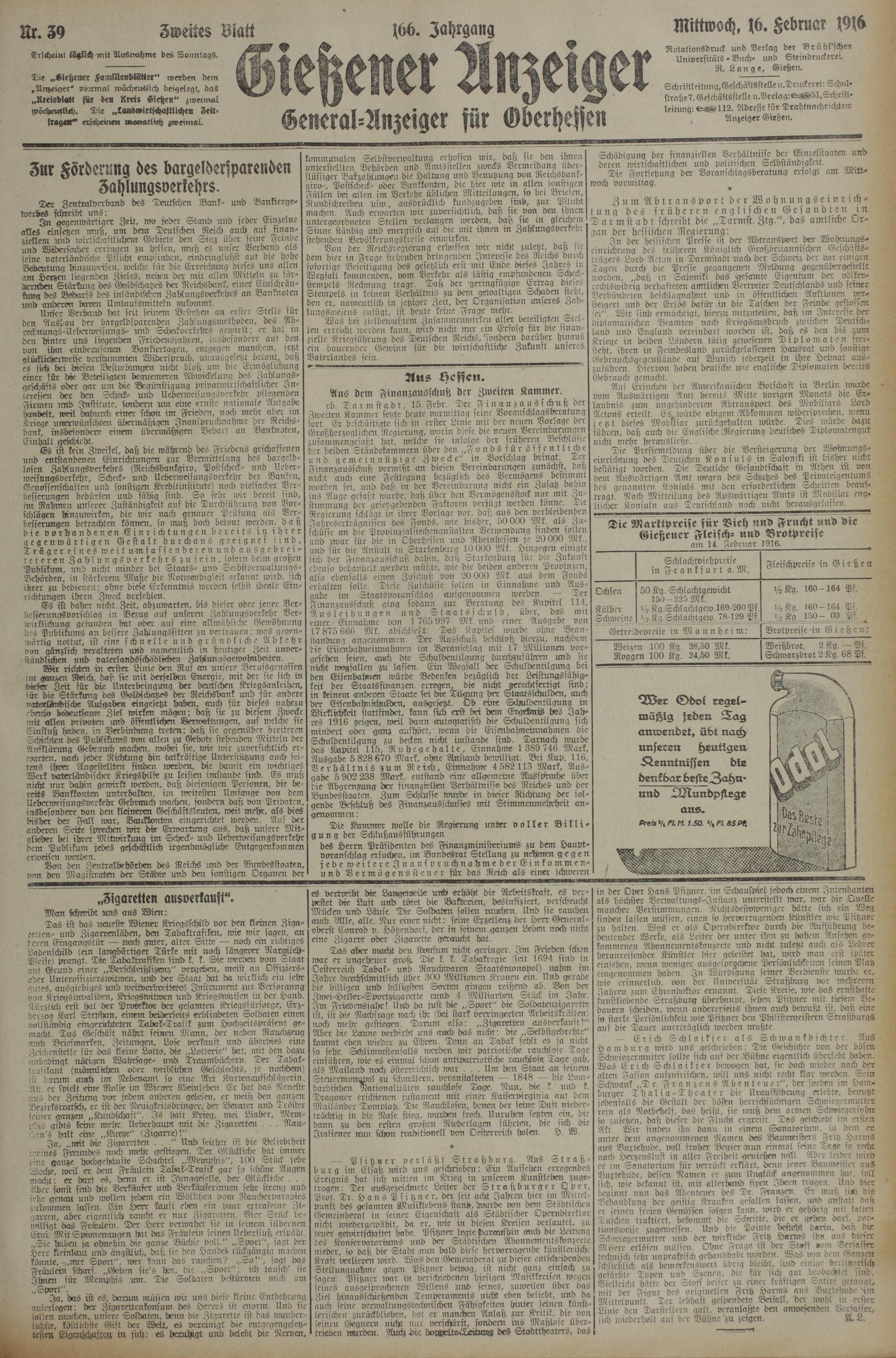 (16.2.1916) Zweites Blatt