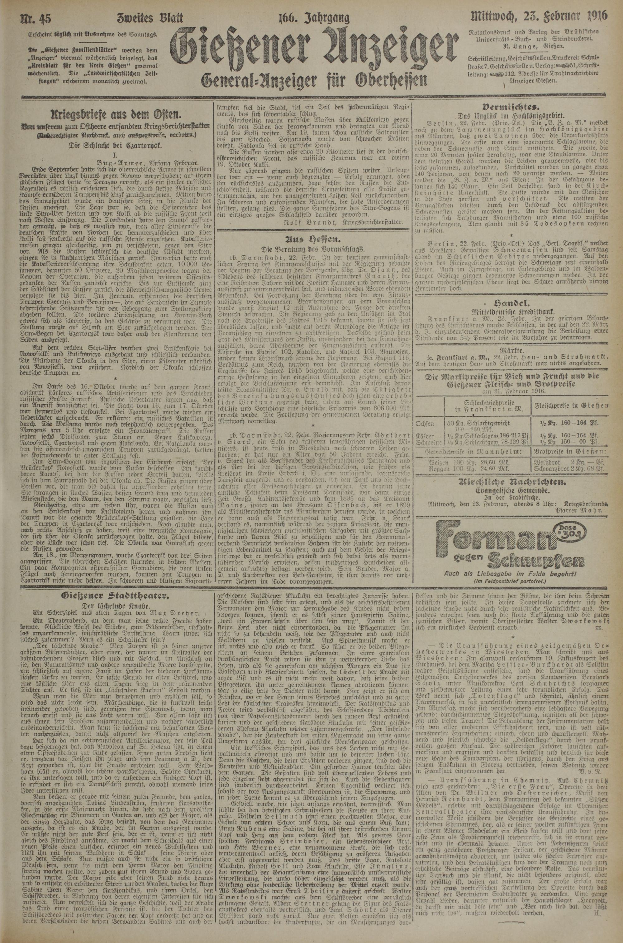 (23.2.1916) Zweites Blatt
