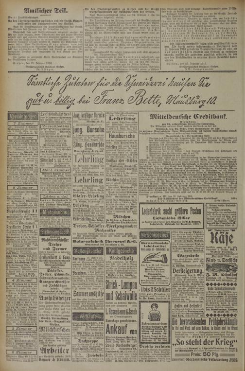 Regionale Zeitungen aus der Zeit des Ersten Weltkrieges