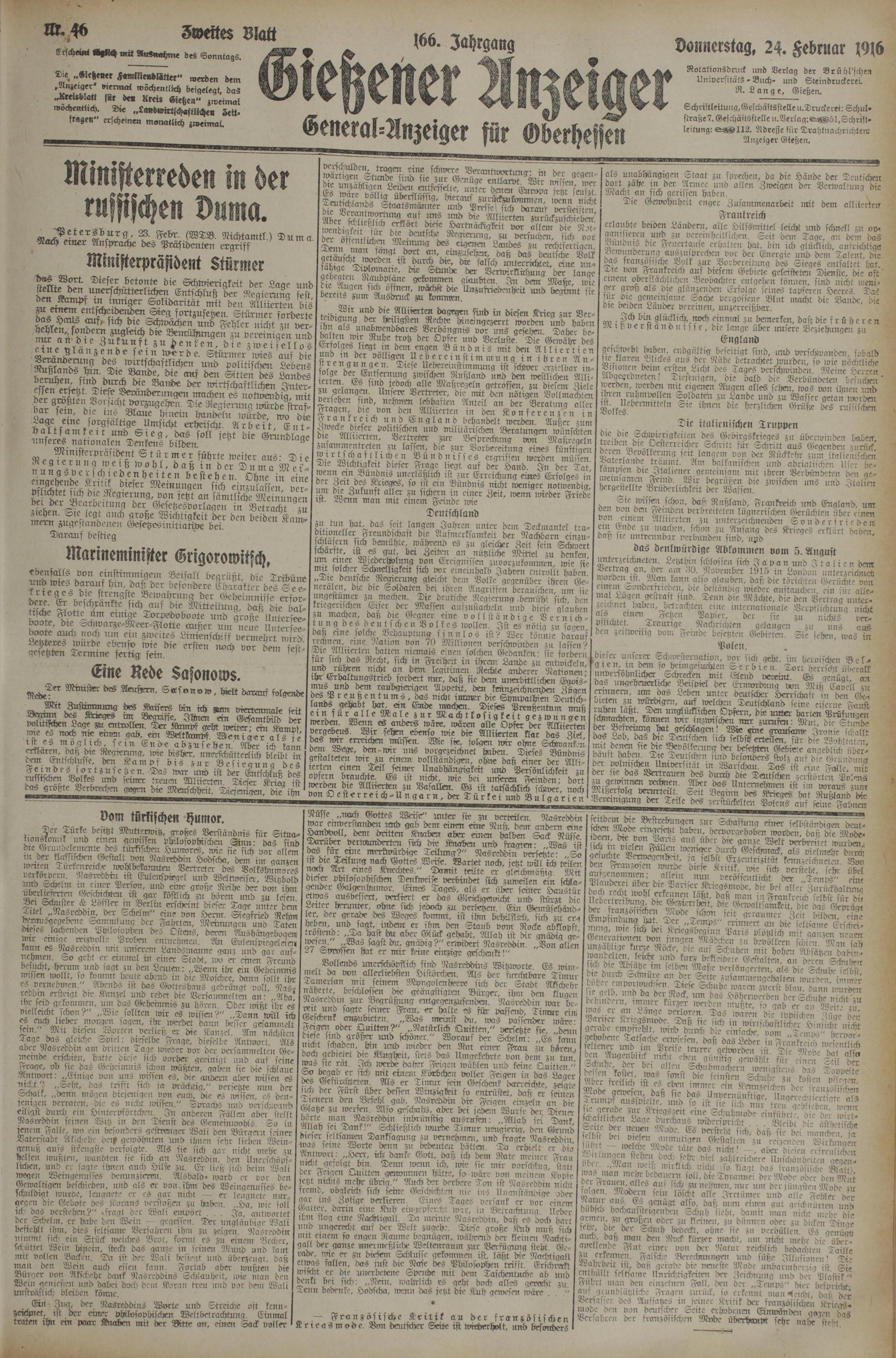 (24.2.1916) Zweites Blatt