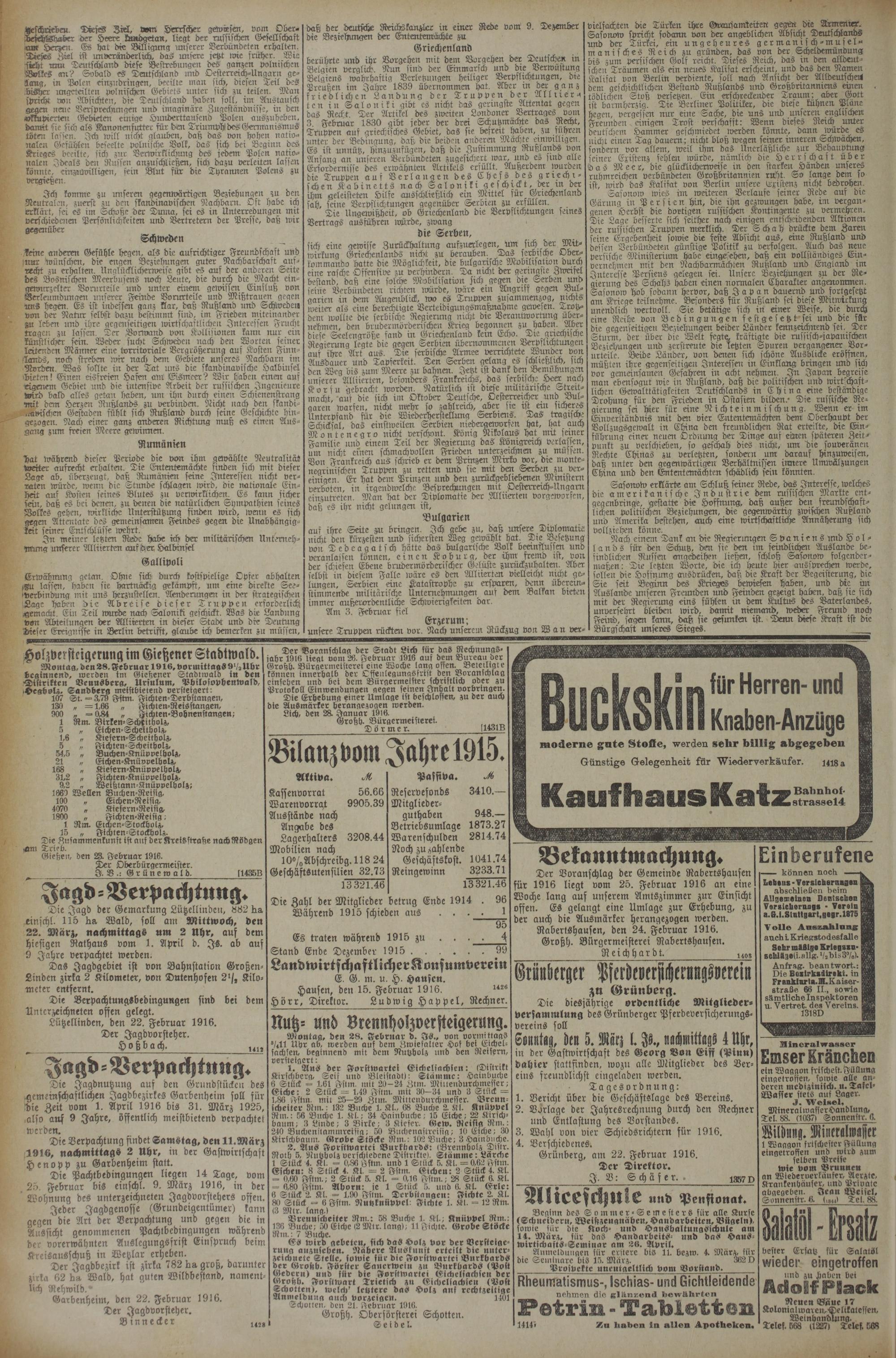 (24.2.1916) Zweites Blatt