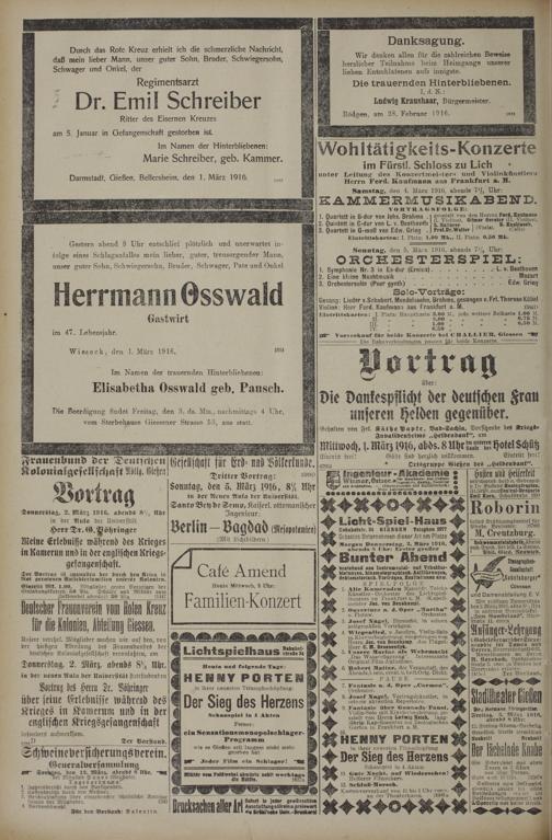 Regionale Zeitungen aus der Zeit des Ersten Weltkrieges