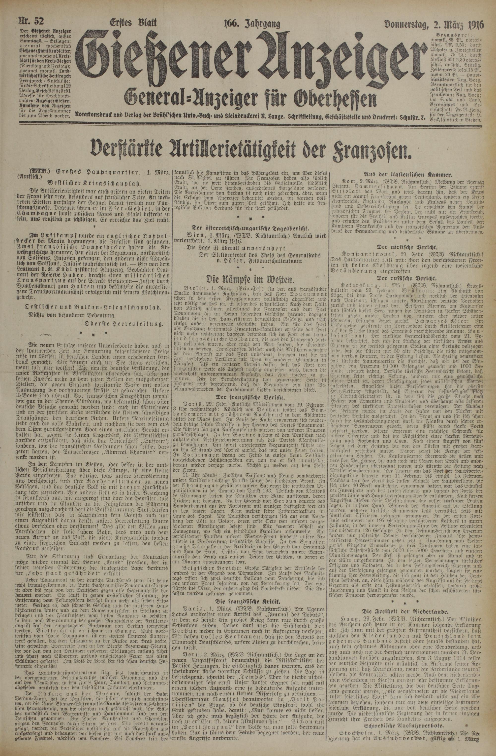 (2.3.1916) Erstes Blatt
