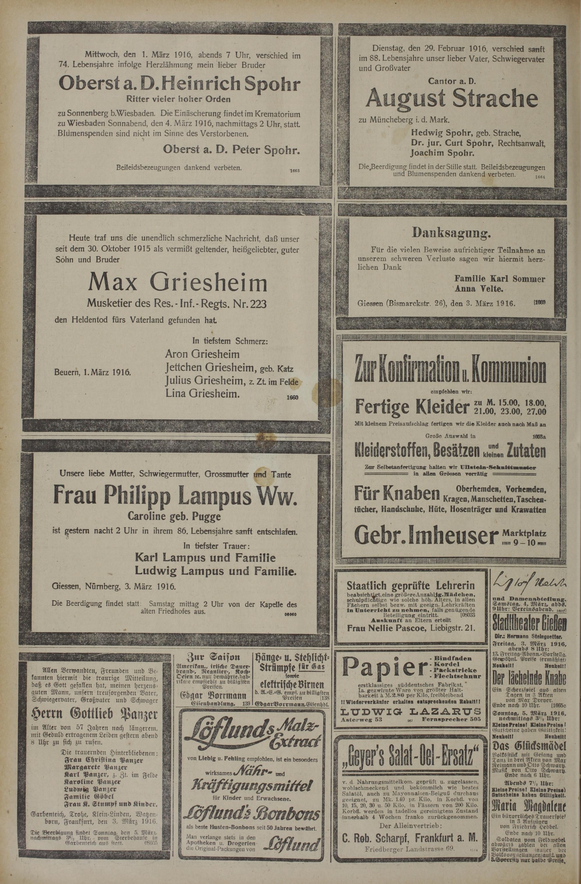 (3.3.1916) Erstes Blatt