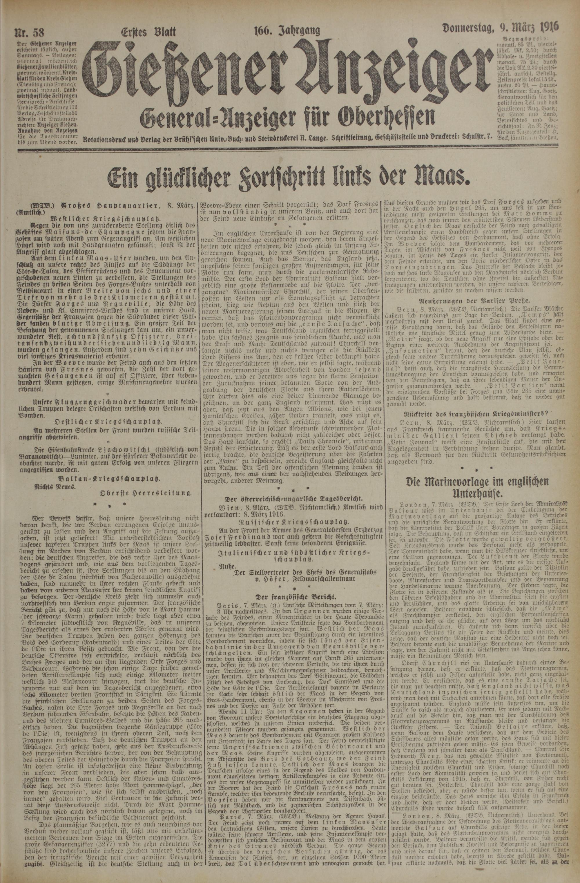 (9.3.1916) Erstes Blatt