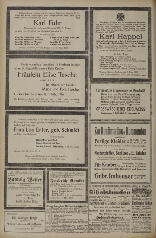 Regionale Zeitungen aus der Zeit des Ersten Weltkrieges