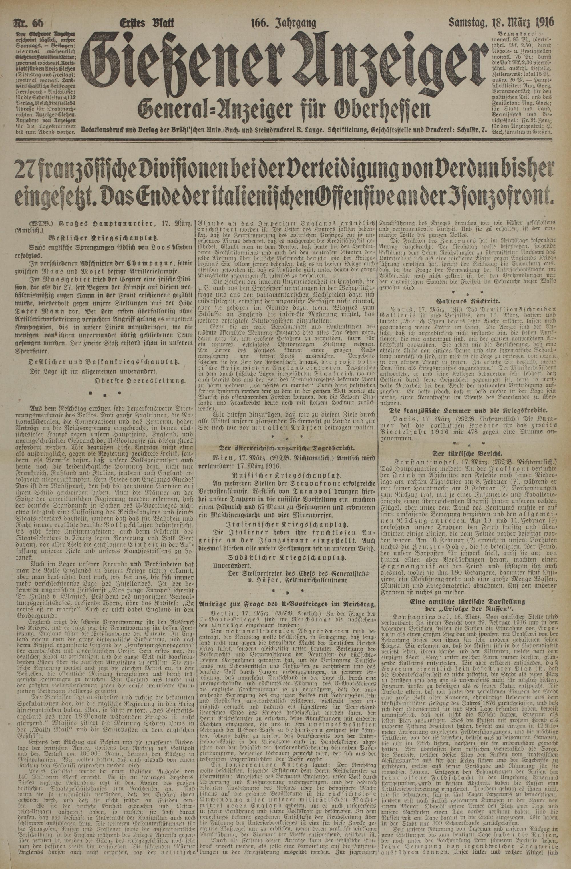 (18.3.1916) Erstes Blatt