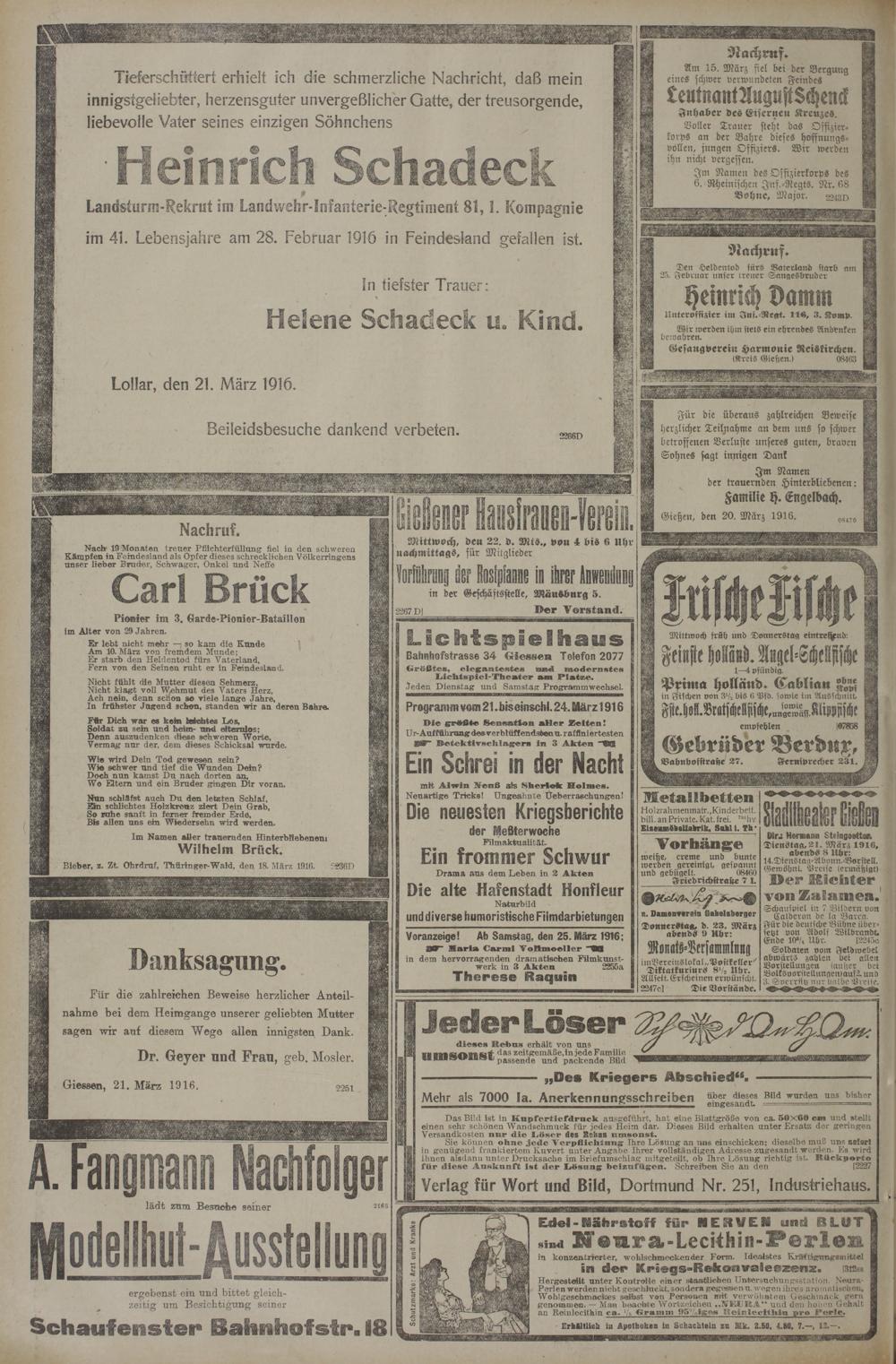 (21.3.1916) Erstes Blatt