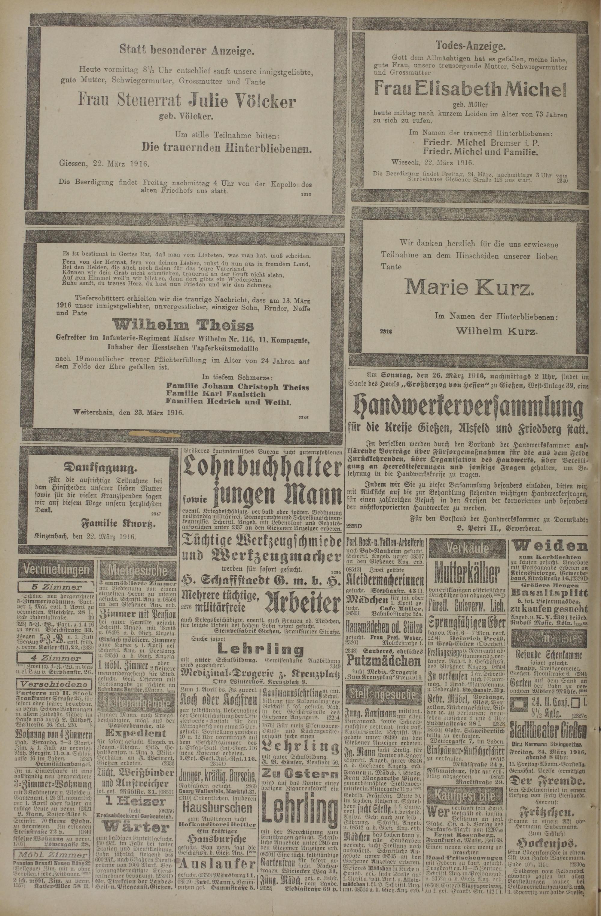(23.3.1916) Erstes Blatt