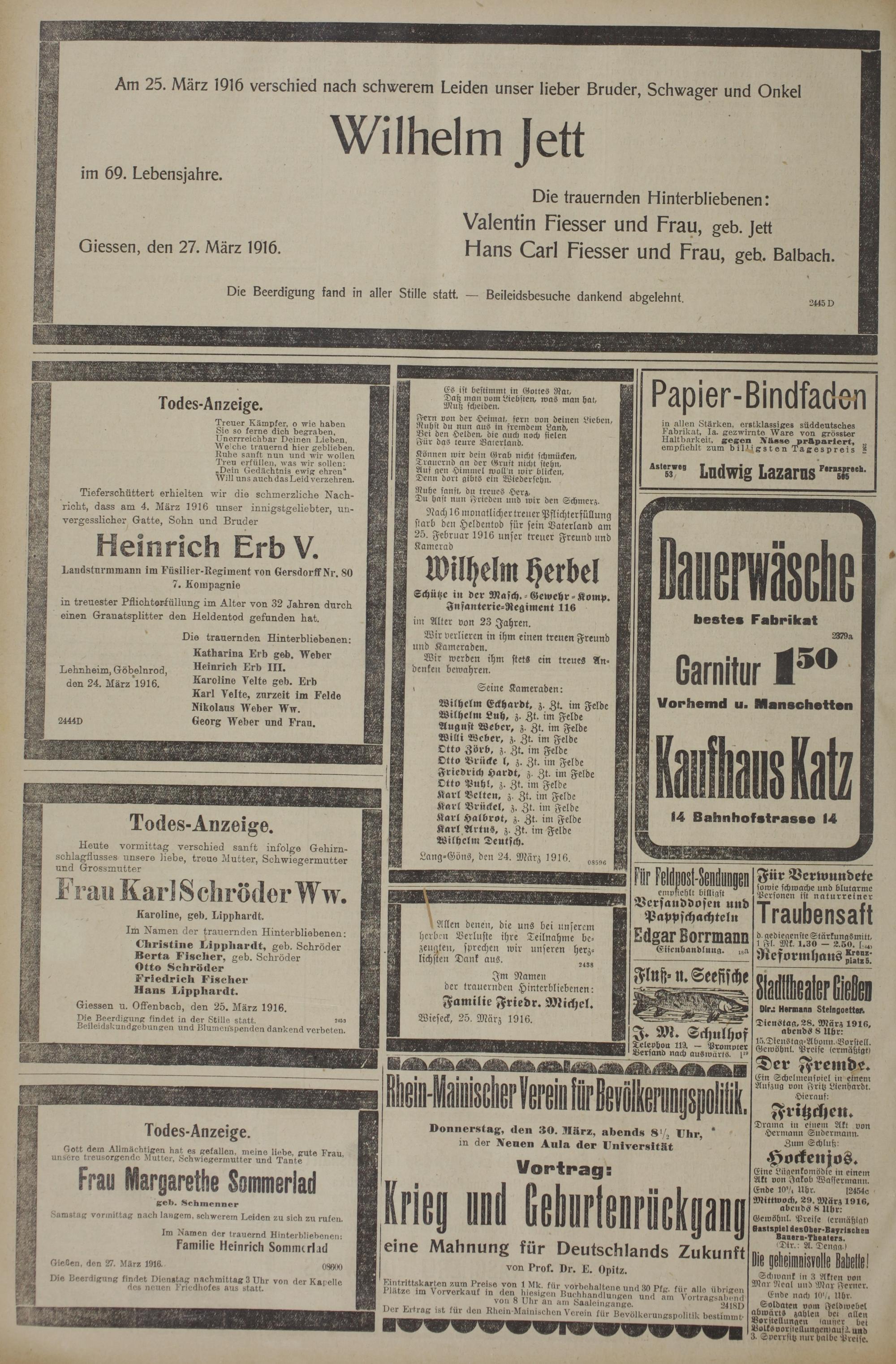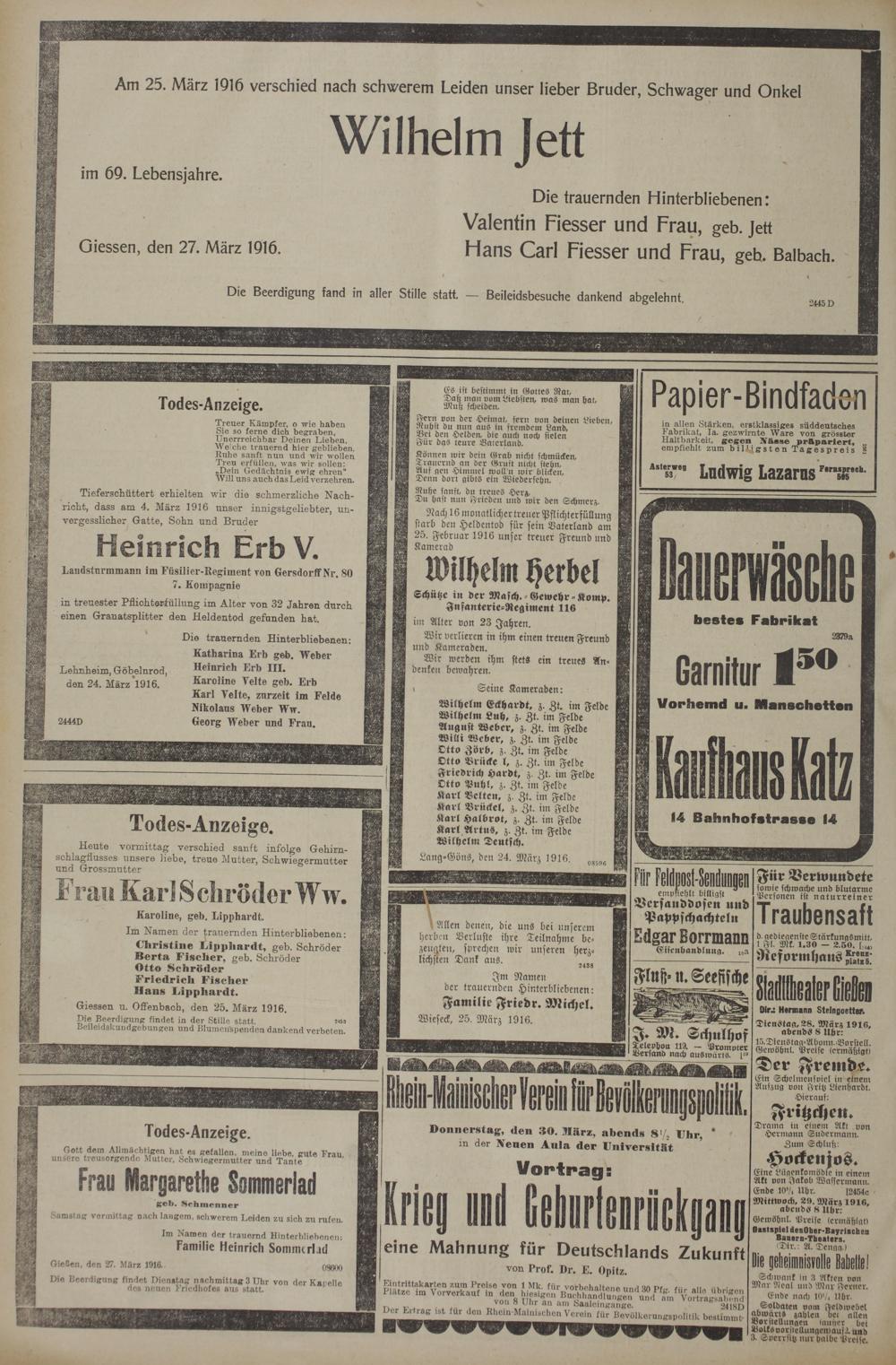 (27.3.1916) Erstes Blatt