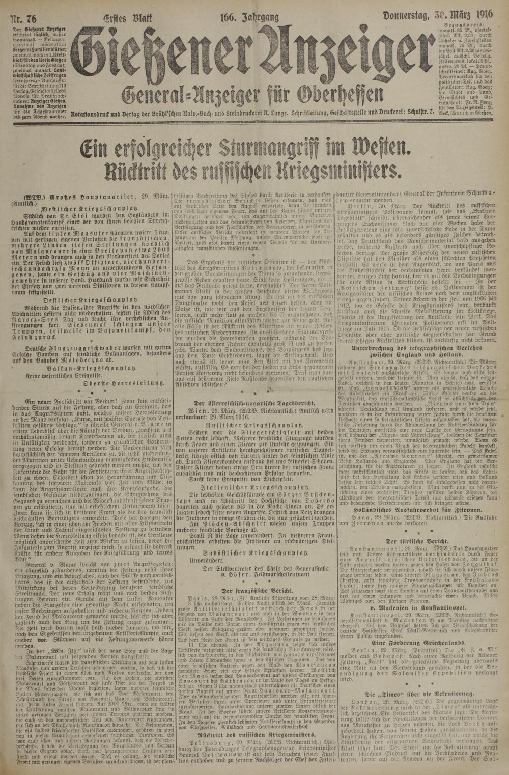 Regionale Zeitungen aus der Zeit des Ersten Weltkrieges