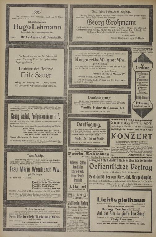 Regionale Zeitungen aus der Zeit des Ersten Weltkrieges
