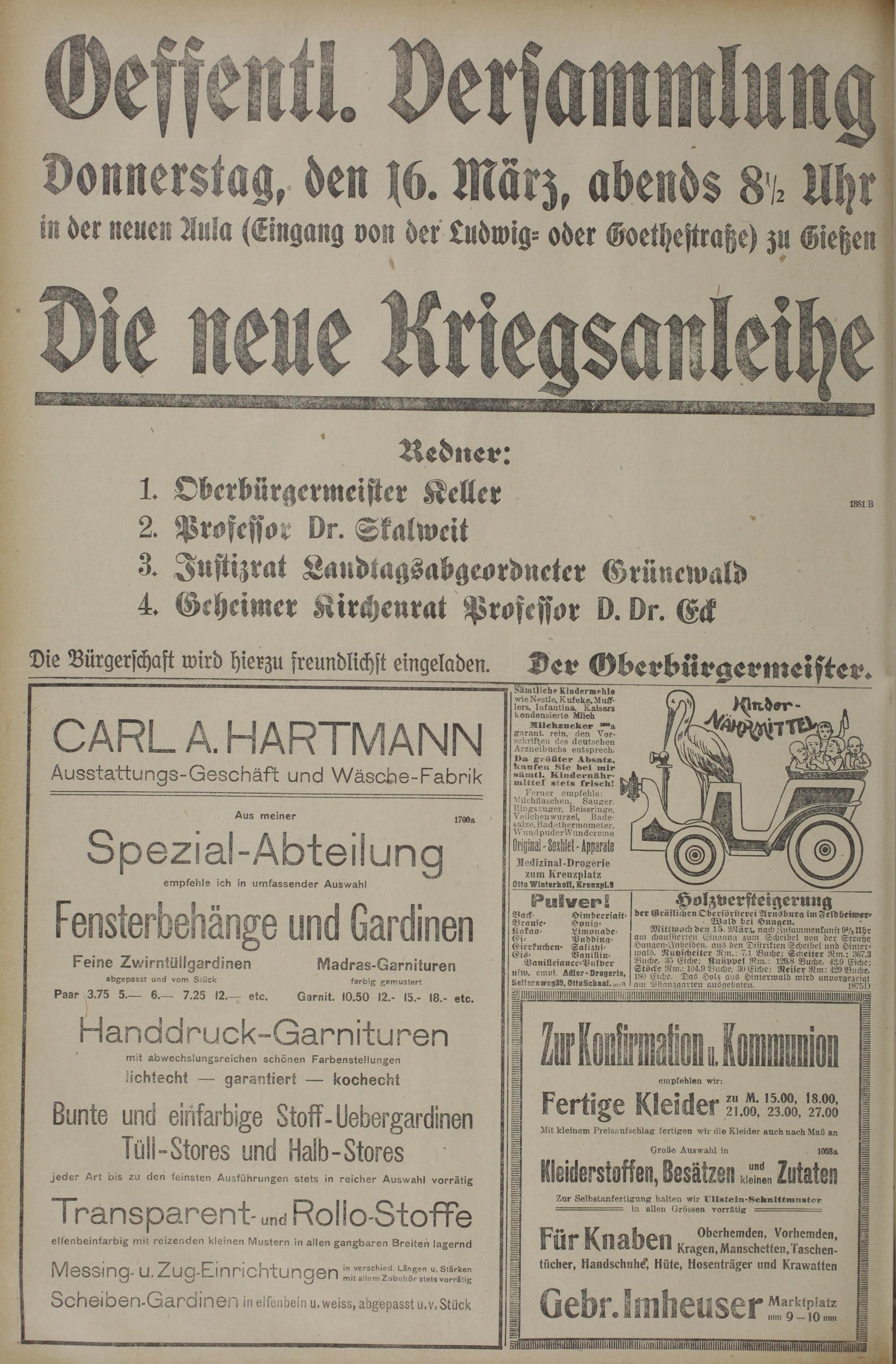 Regionale Zeitungen aus der Zeit des Ersten Weltkrieges