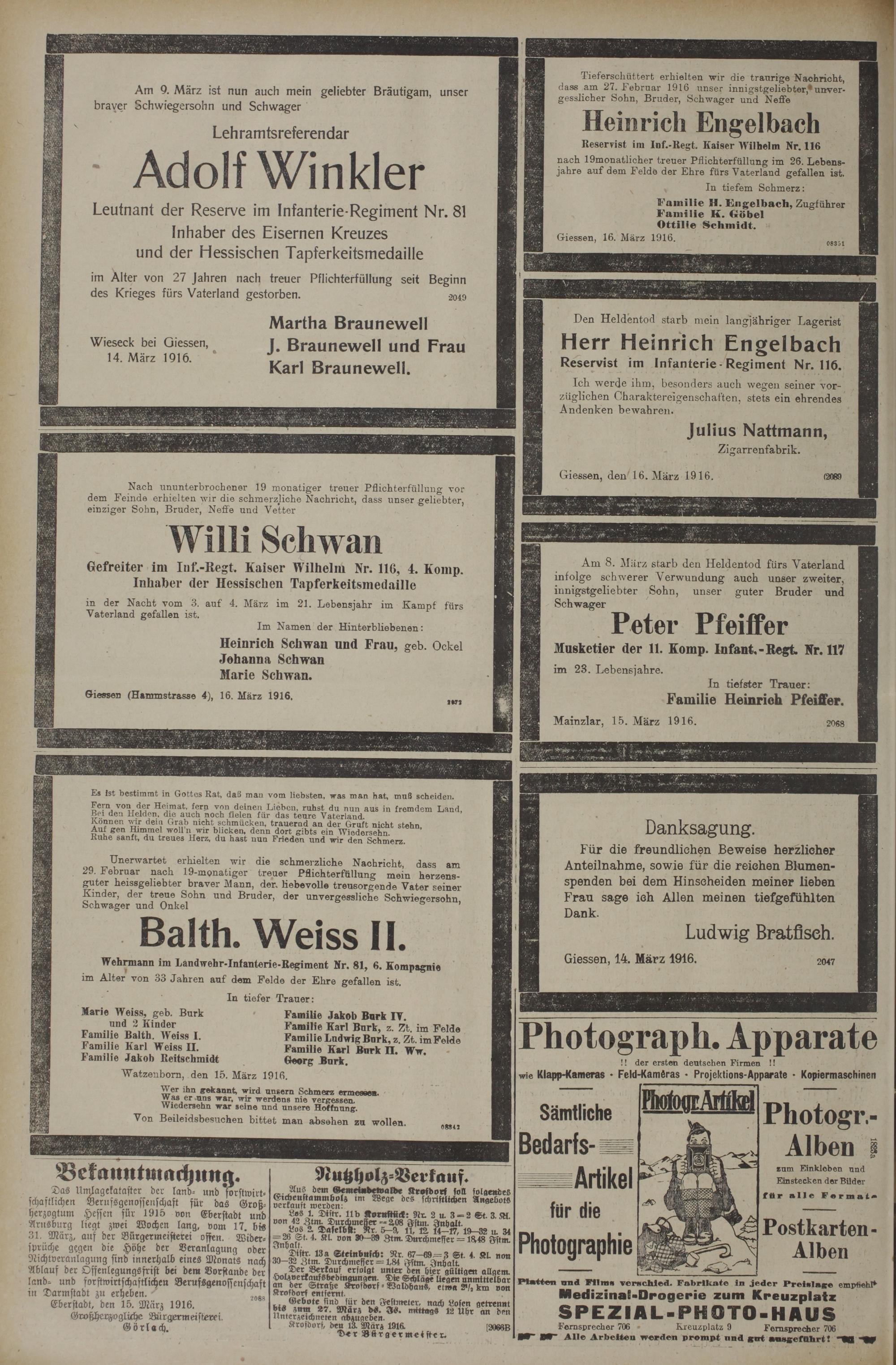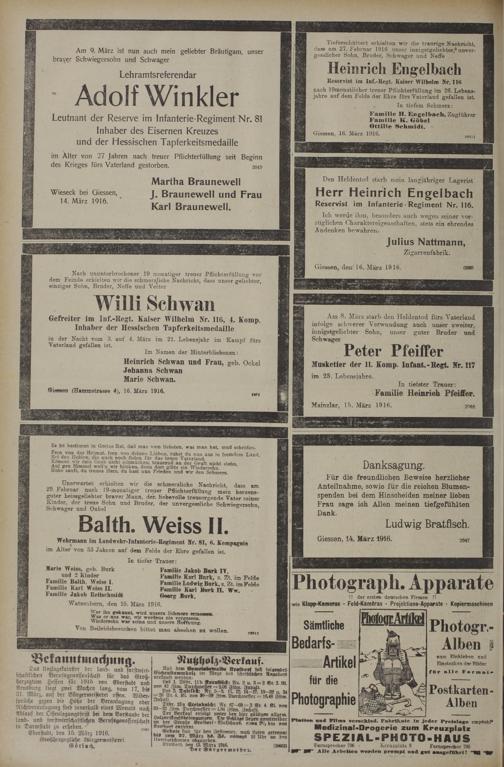 Regionale Zeitungen aus der Zeit des Ersten Weltkrieges