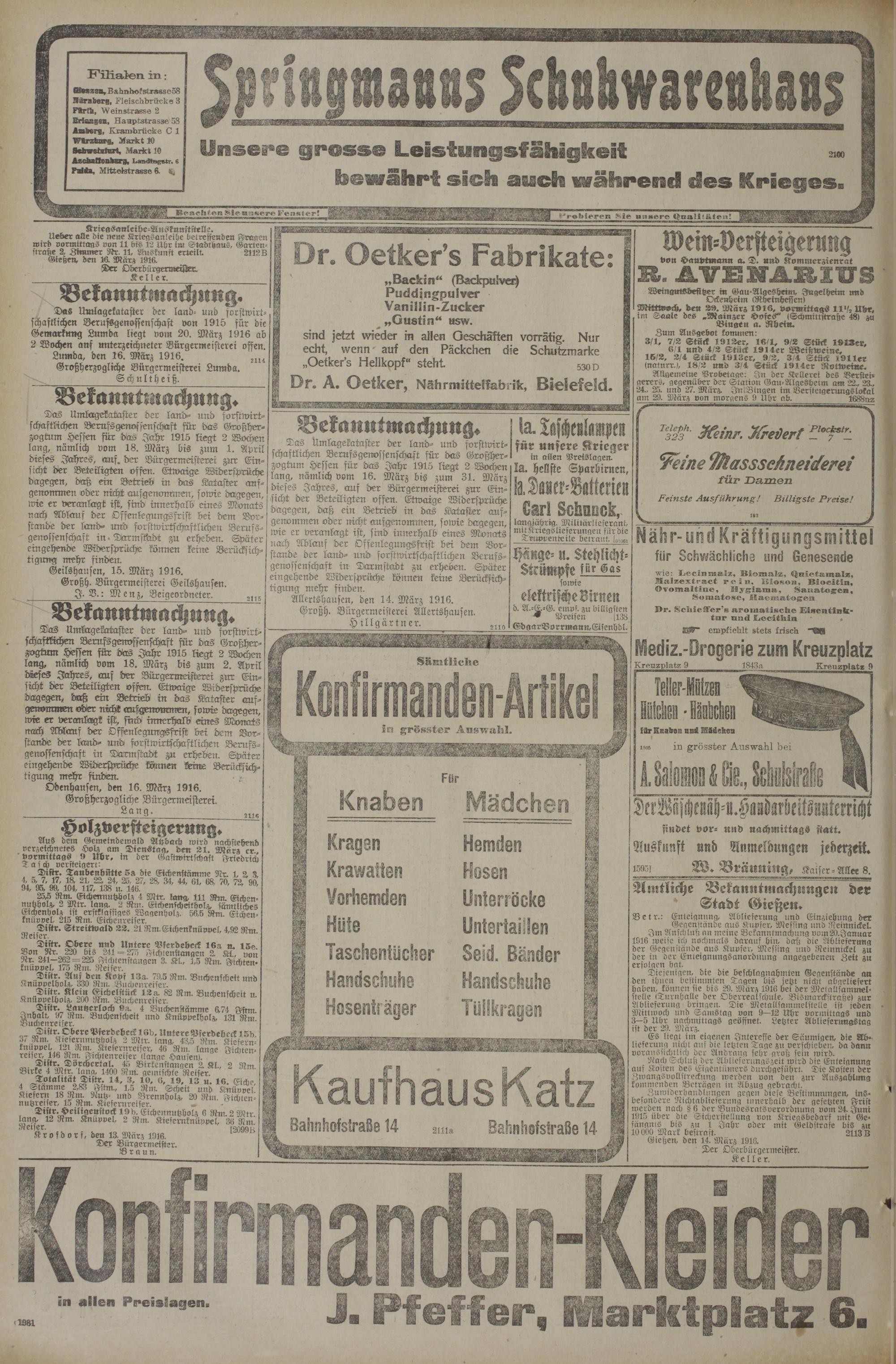 Regionale Zeitungen aus der Zeit des Ersten Weltkrieges