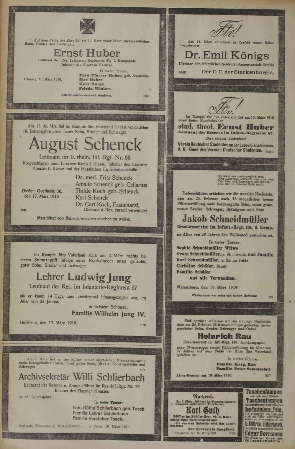 Regionale Zeitungen aus der Zeit des Ersten Weltkrieges