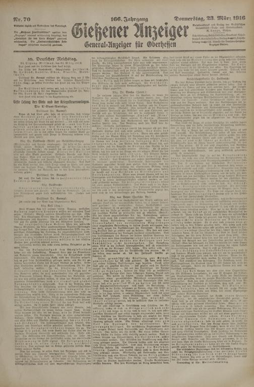 Regionale Zeitungen aus der Zeit des Ersten Weltkrieges