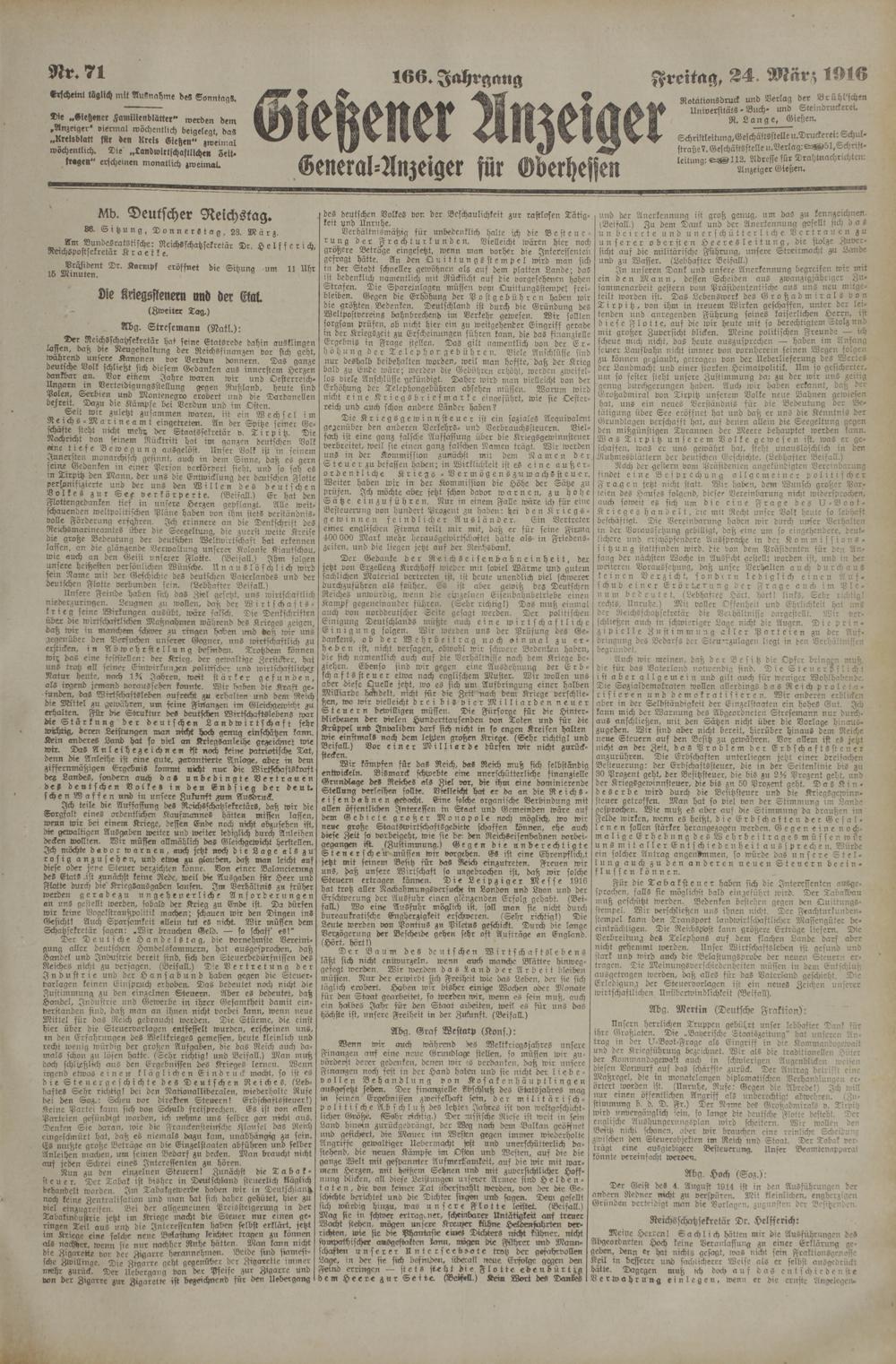Gießener Anzeiger. 1868-1943