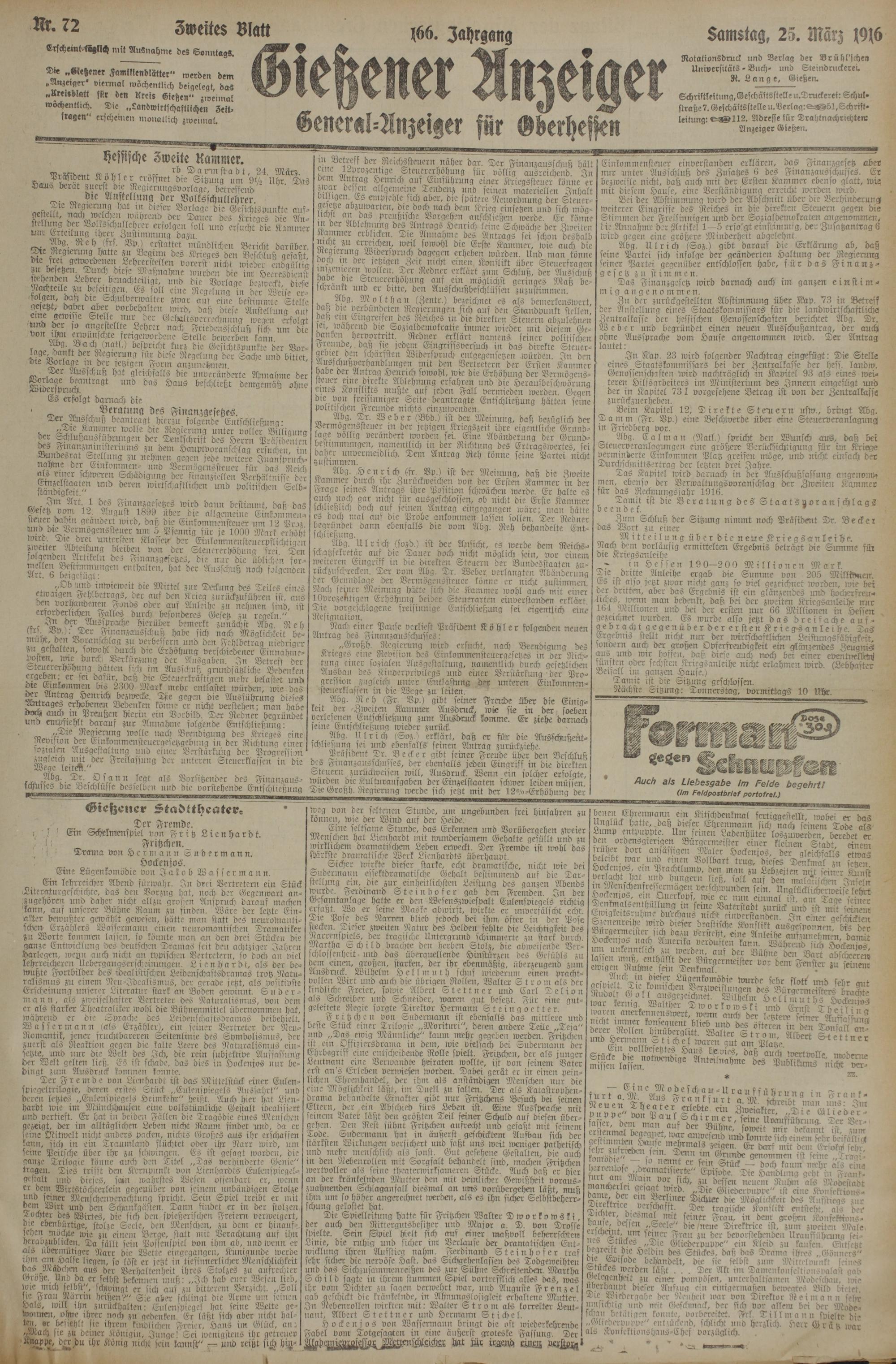(25.3.1916) Zweites Blatt