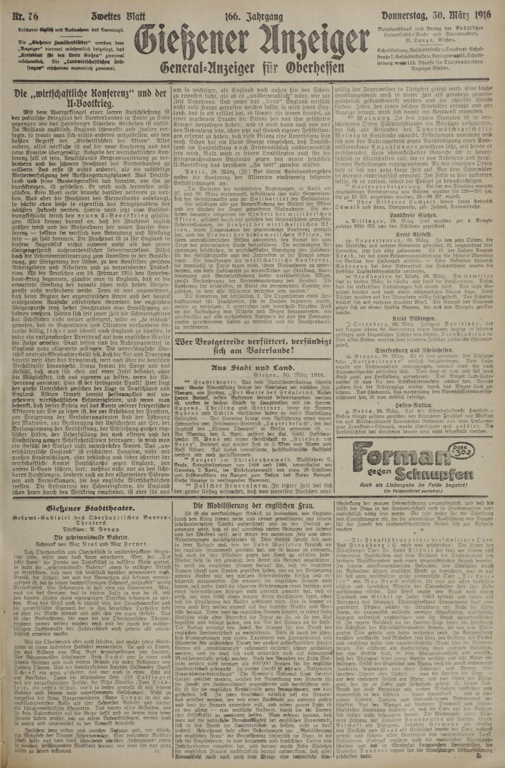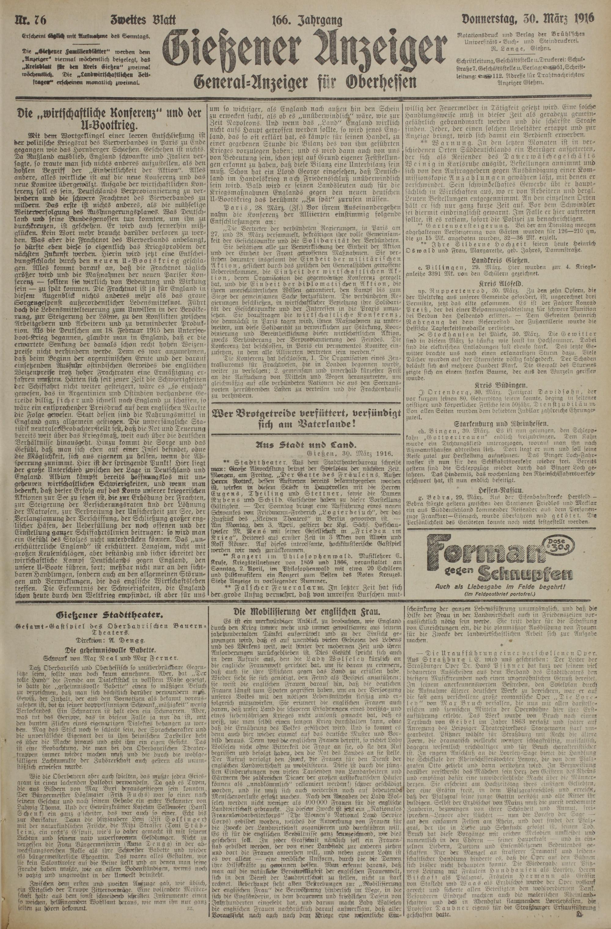 (30.3.1916) Zweites Blatt
