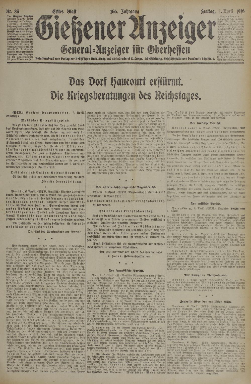 Der Erste Weltkrieg im Spiegel hessischer Regionalzeitungen