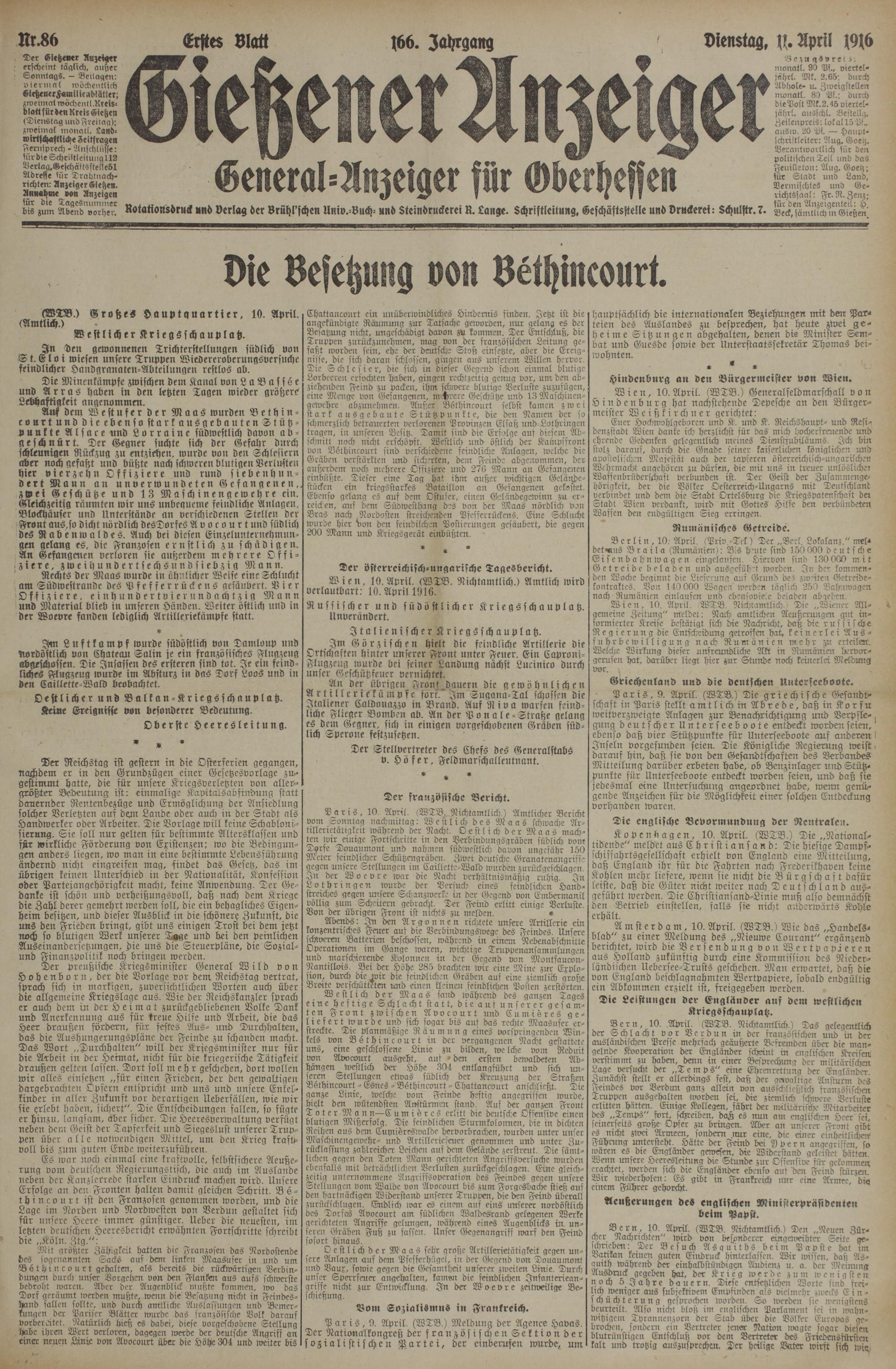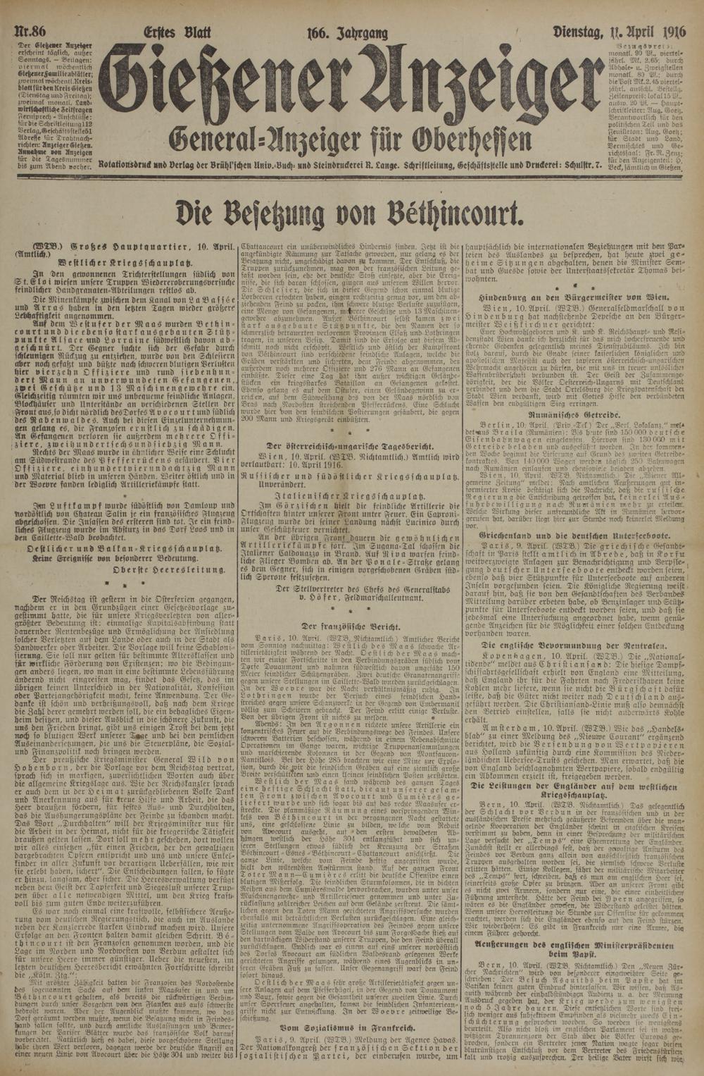 (11.4.1916) Erstes Blatt