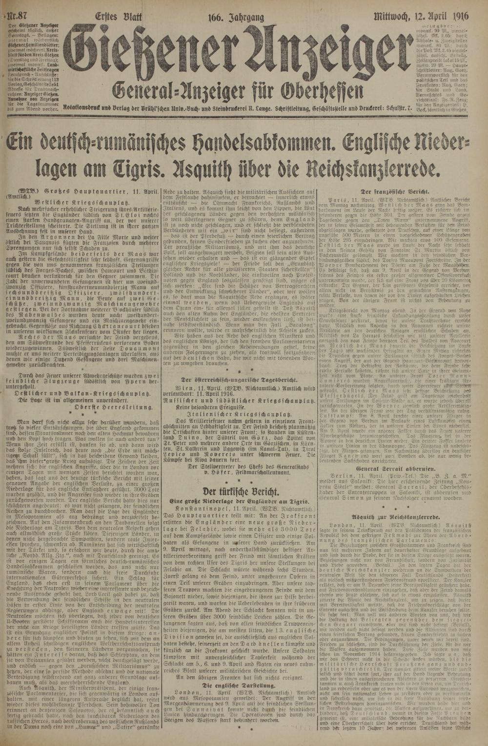 Der Erste Weltkrieg im Spiegel hessischer Regionalzeitungen