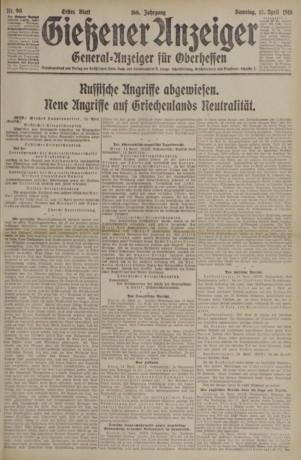 Regionale Zeitungen aus der Zeit des Ersten Weltkrieges