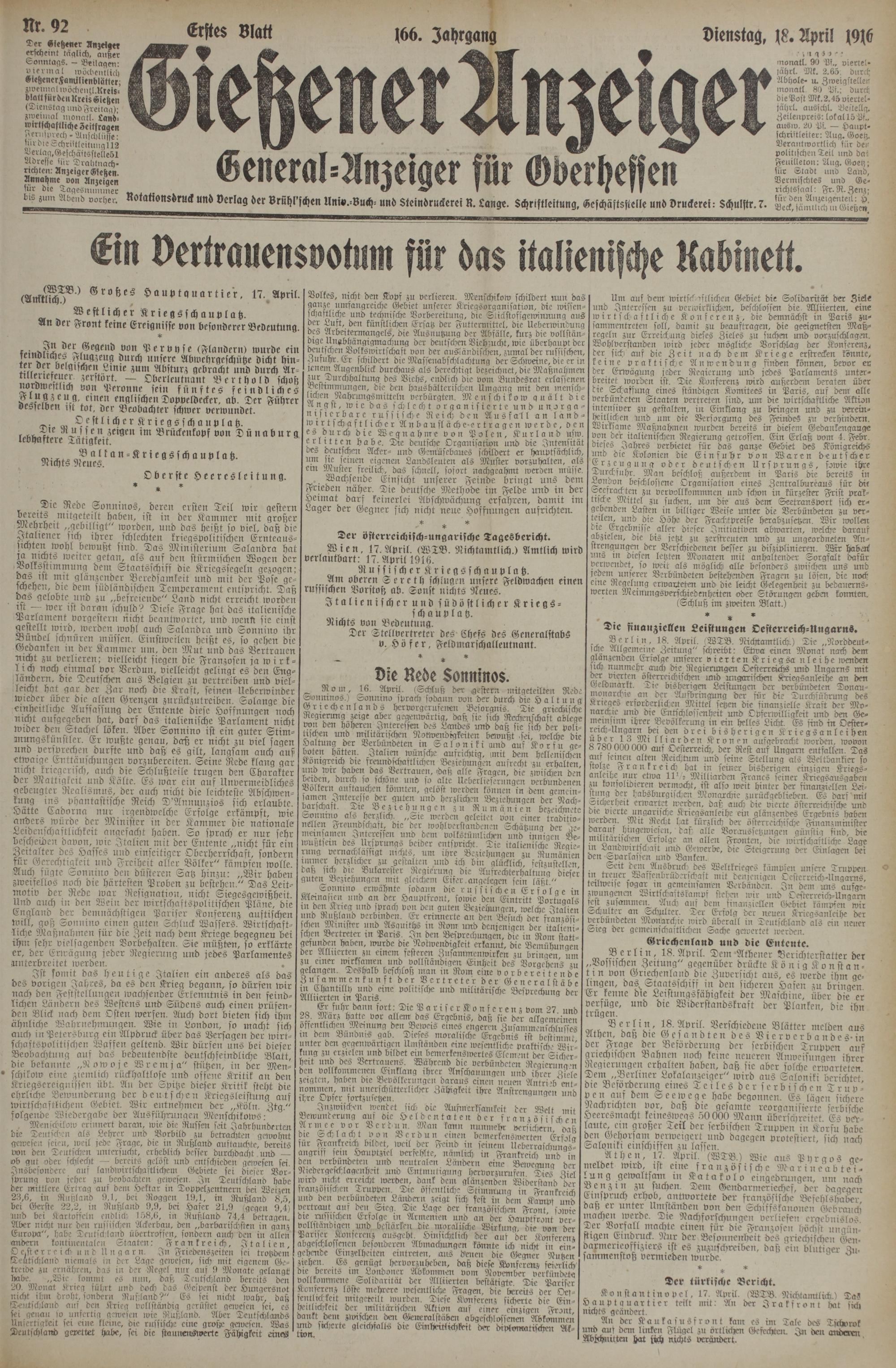 (18.4.1916) Erstes Blatt