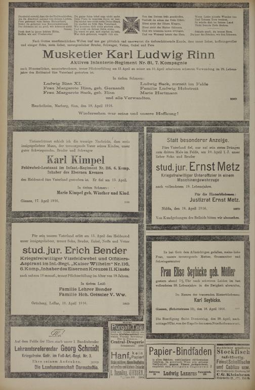 Regionale Zeitungen aus der Zeit des Ersten Weltkrieges