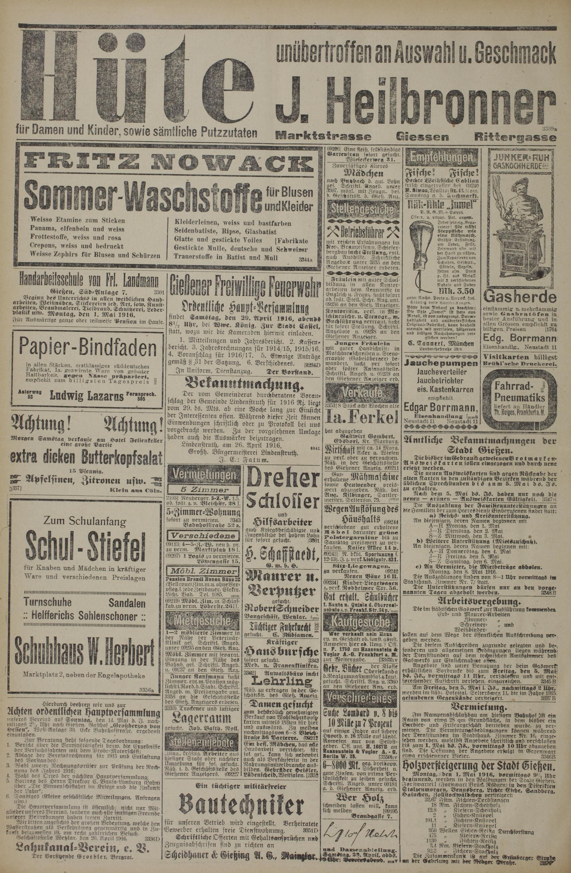 Regionale Zeitungen aus der Zeit des Ersten Weltkrieges