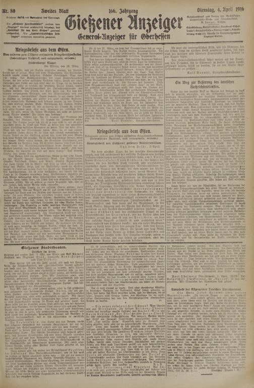 Regionale Zeitungen aus der Zeit des Ersten Weltkrieges