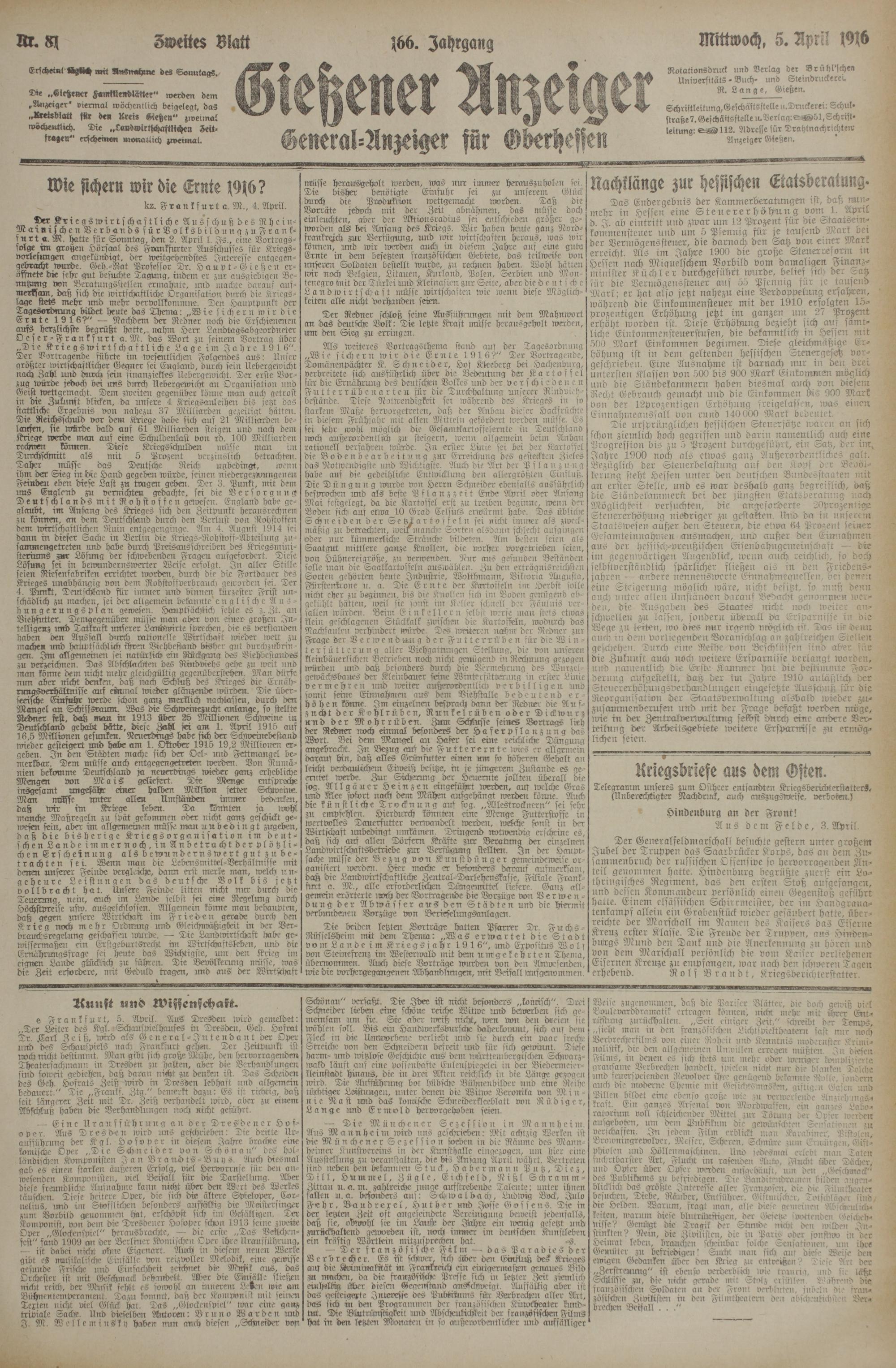 (5.4.1916) Zweites Blatt