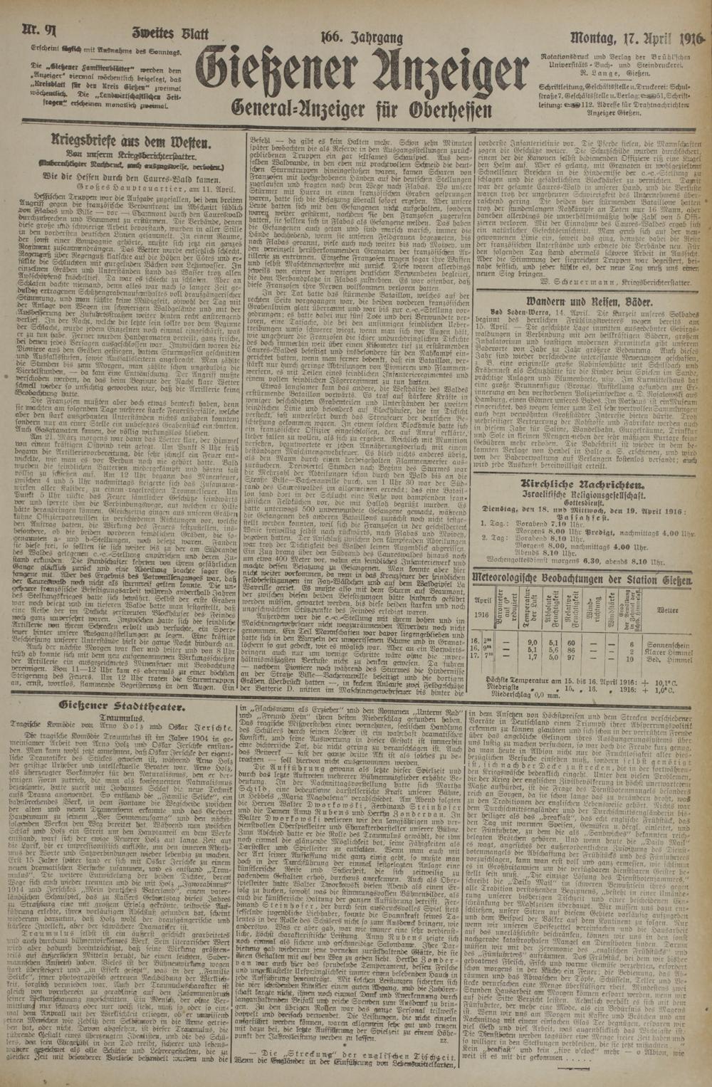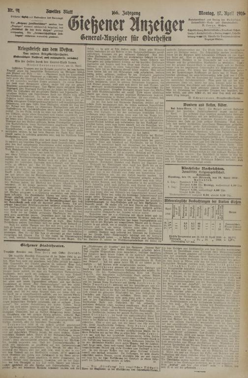 Regionale Zeitungen aus der Zeit des Ersten Weltkrieges