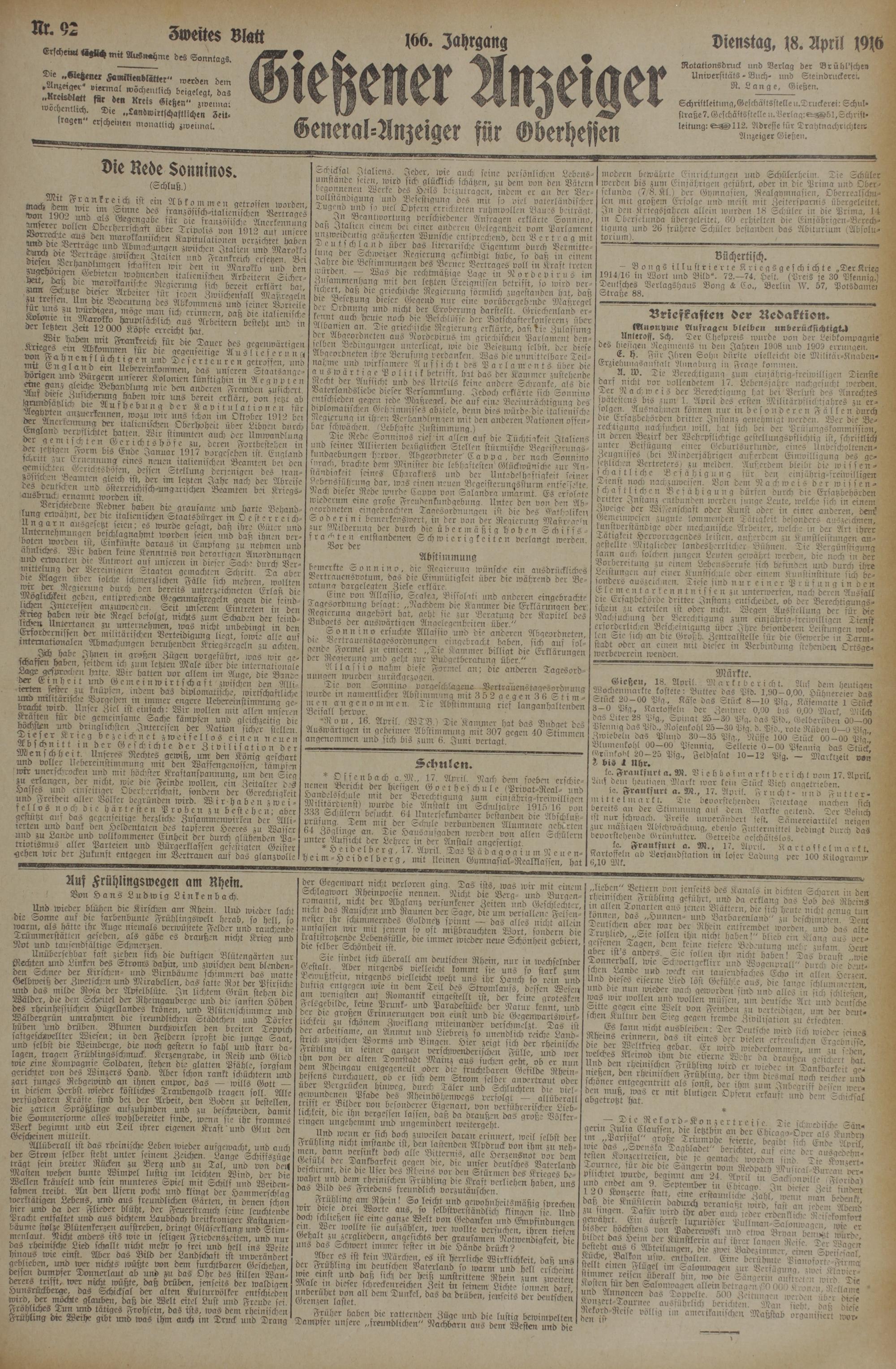 (18.4.1916) Zweites Blatt
